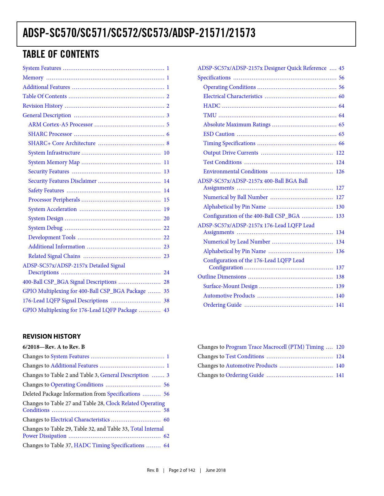ADSP-SC570/SC571/SC572/SC573/ADSP-21571/21573 TABLE OF CONTENTS REVISION HISTORY 6/2018—Rev A to Rev B