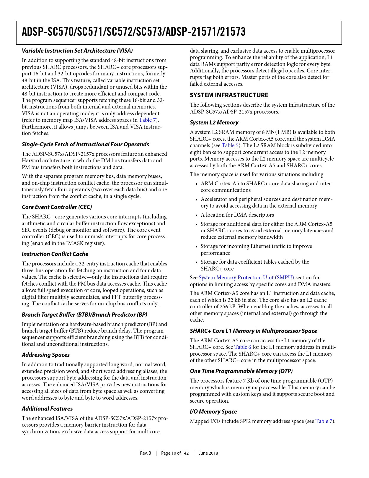 ADSP-SC570/SC571/SC572/SC573/ADSP-21571/21573. Variable Instruction Set Architecture (VISA). SYSTEM INFRASTRUCTURE