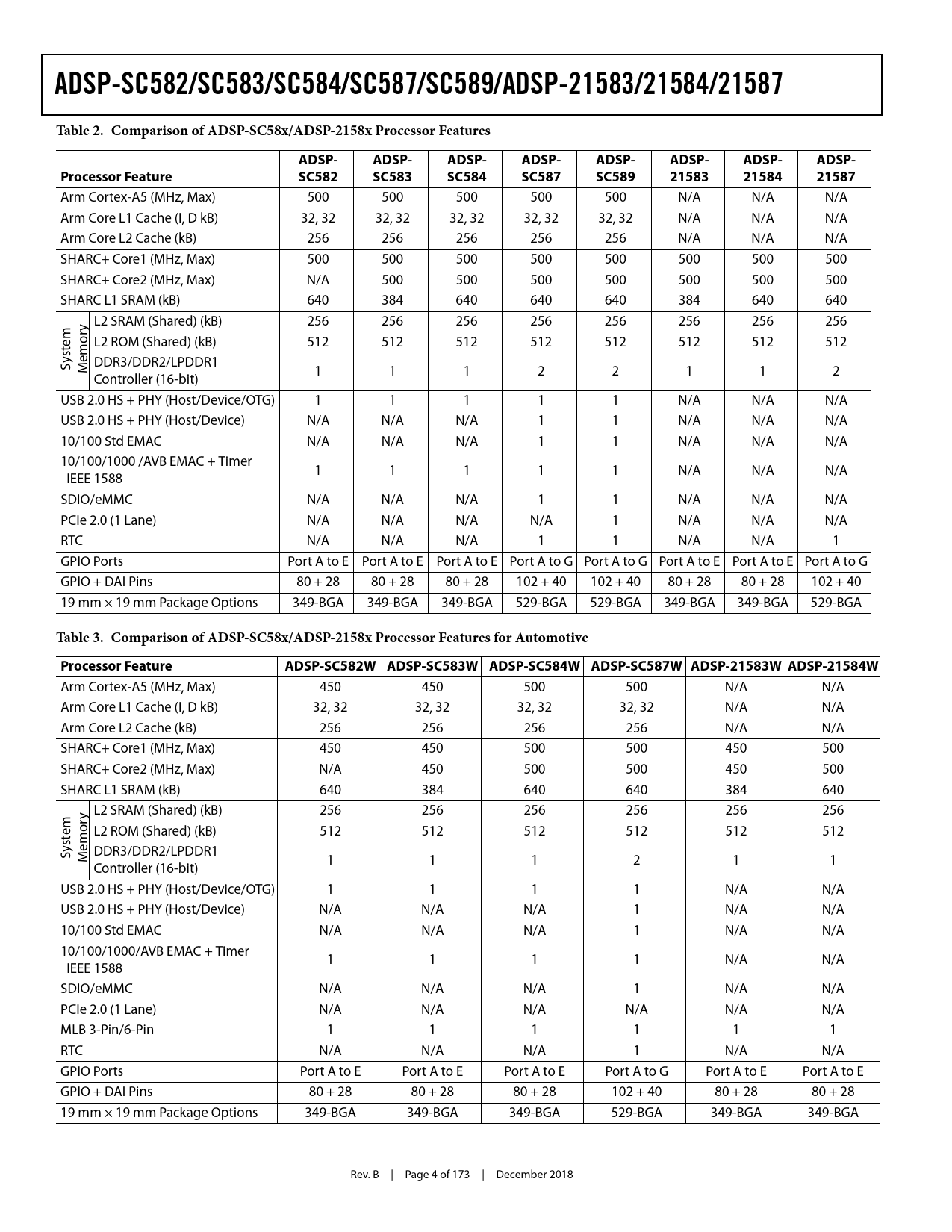 Datasheet ADSP-SC582, ADSP-SC583, ADSP-SC584, ADSP-SC587, ADSP-SC589, ADSP-21583, ADSP-21584, ADSP-21587 (Analog Devices) - 4