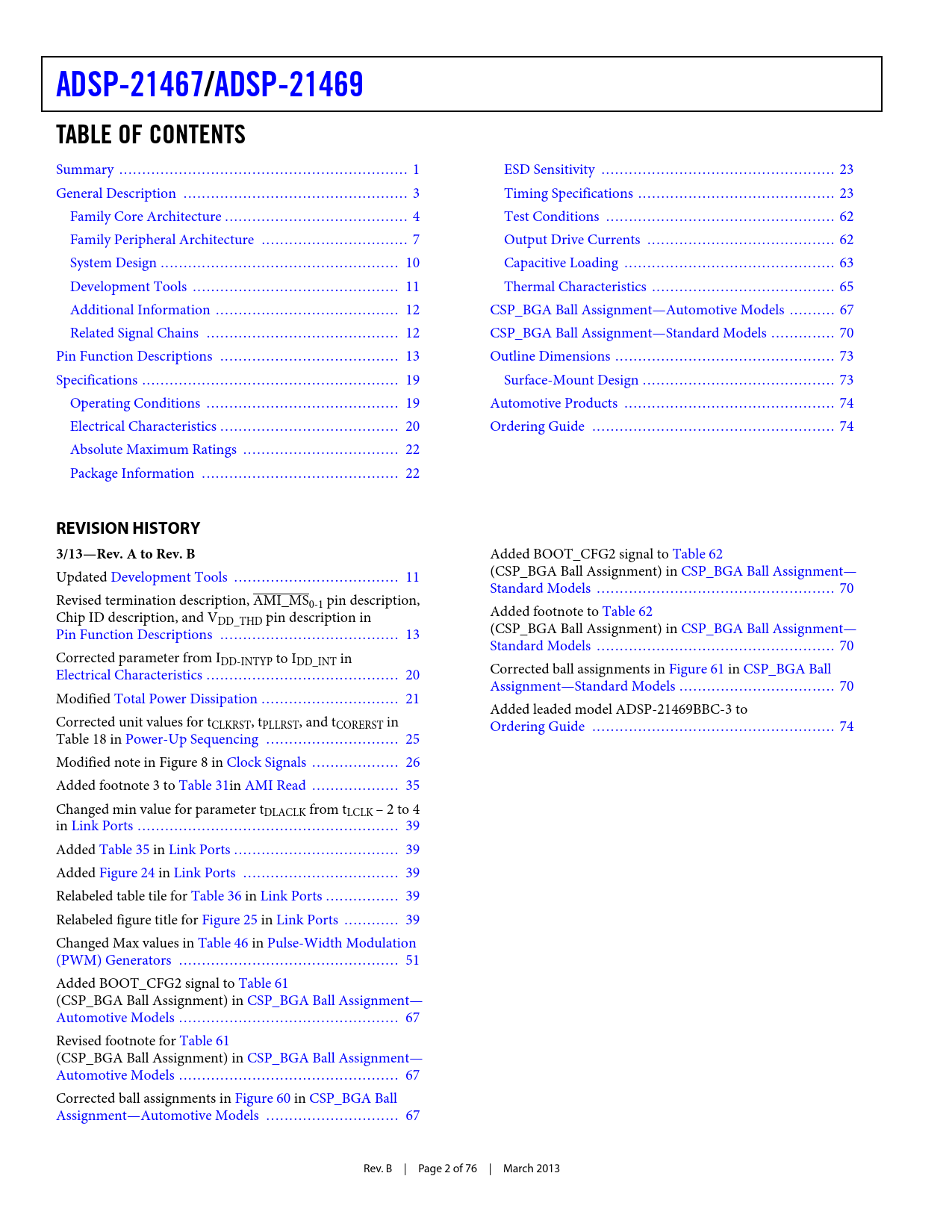 ADSP-21467/. ADSP-21469. TABLE OF CONTENTS. REVISION HISTORY. 3/13—Rev. A to Rev. B