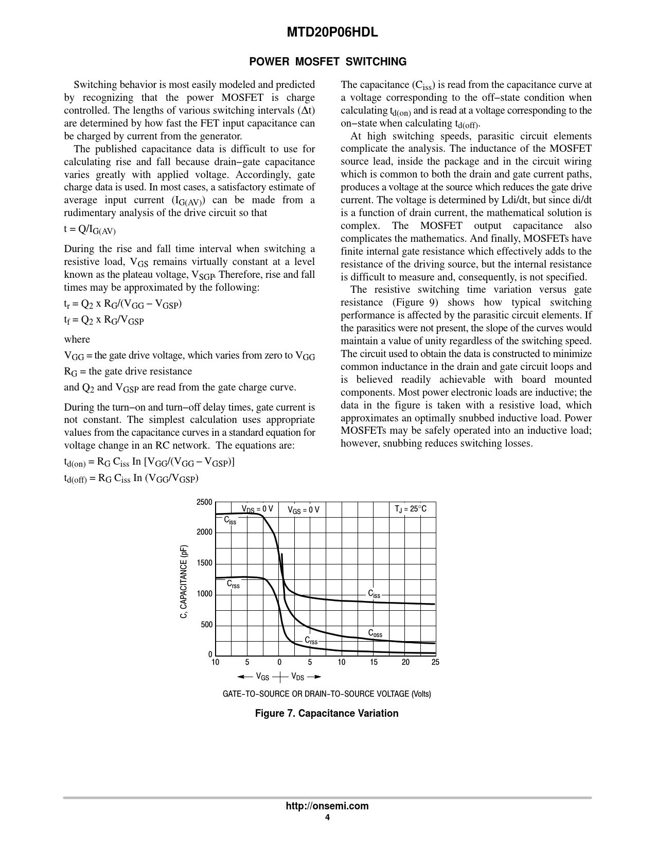 MTD20P06HDL POWER MOSFET SWITCHING Figure 7 Capacitance Variation http://onsemi.com