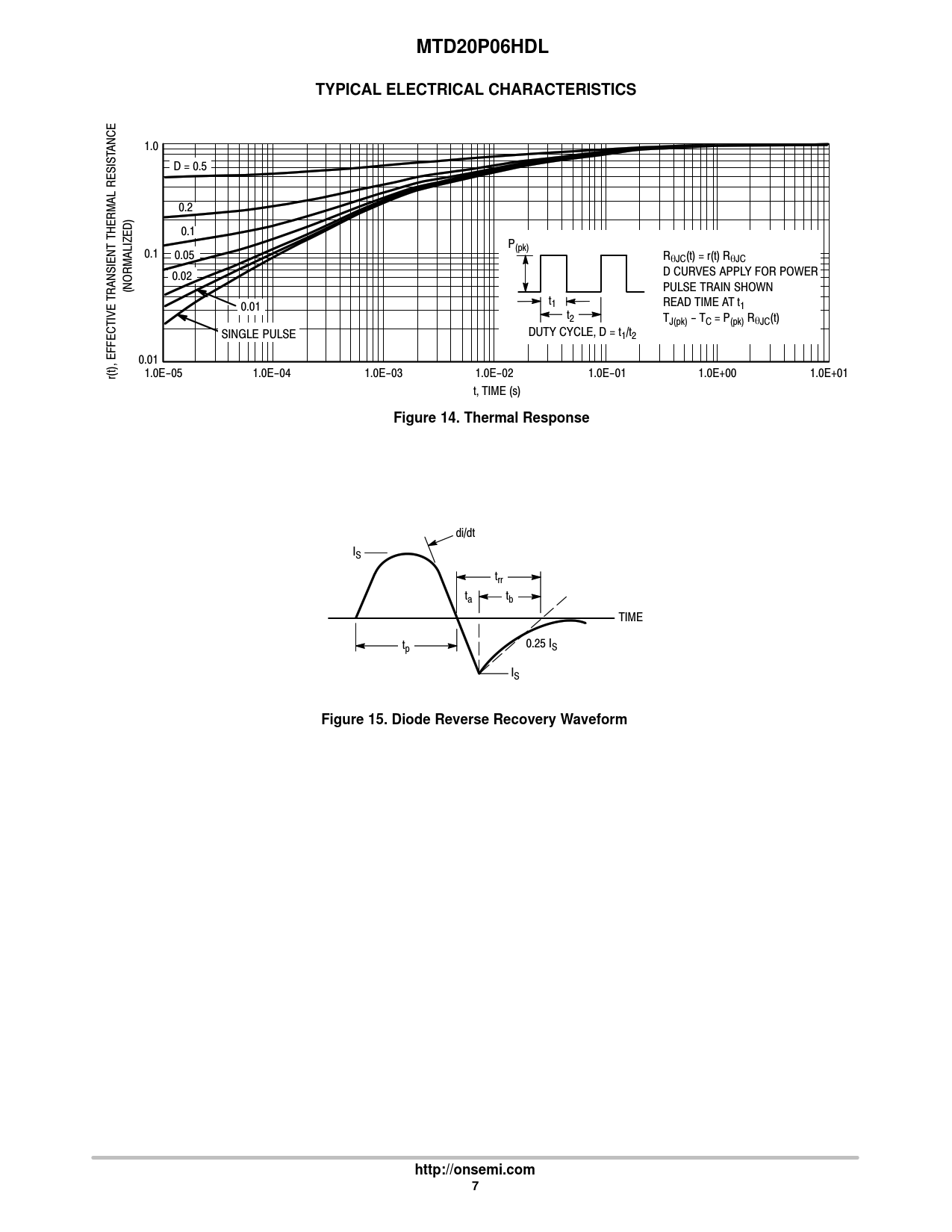 MTD20P06HDL. TYPICAL ELECTRICAL CHARACTERISTICS. Figure 14. Thermal Response. Figure 15. Diode Reverse Recovery Waveform