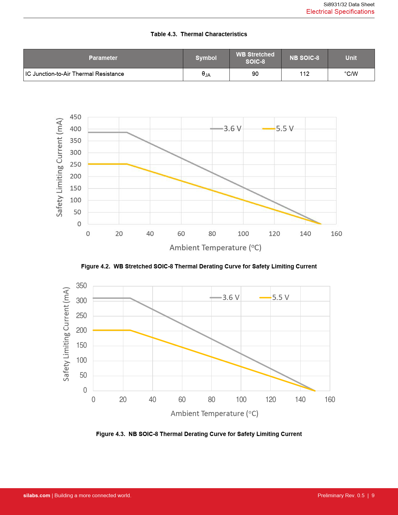 Figure 4.3. NB SOIC-8 Thermal Derating Curve for Safety Limiting Current silabs.com