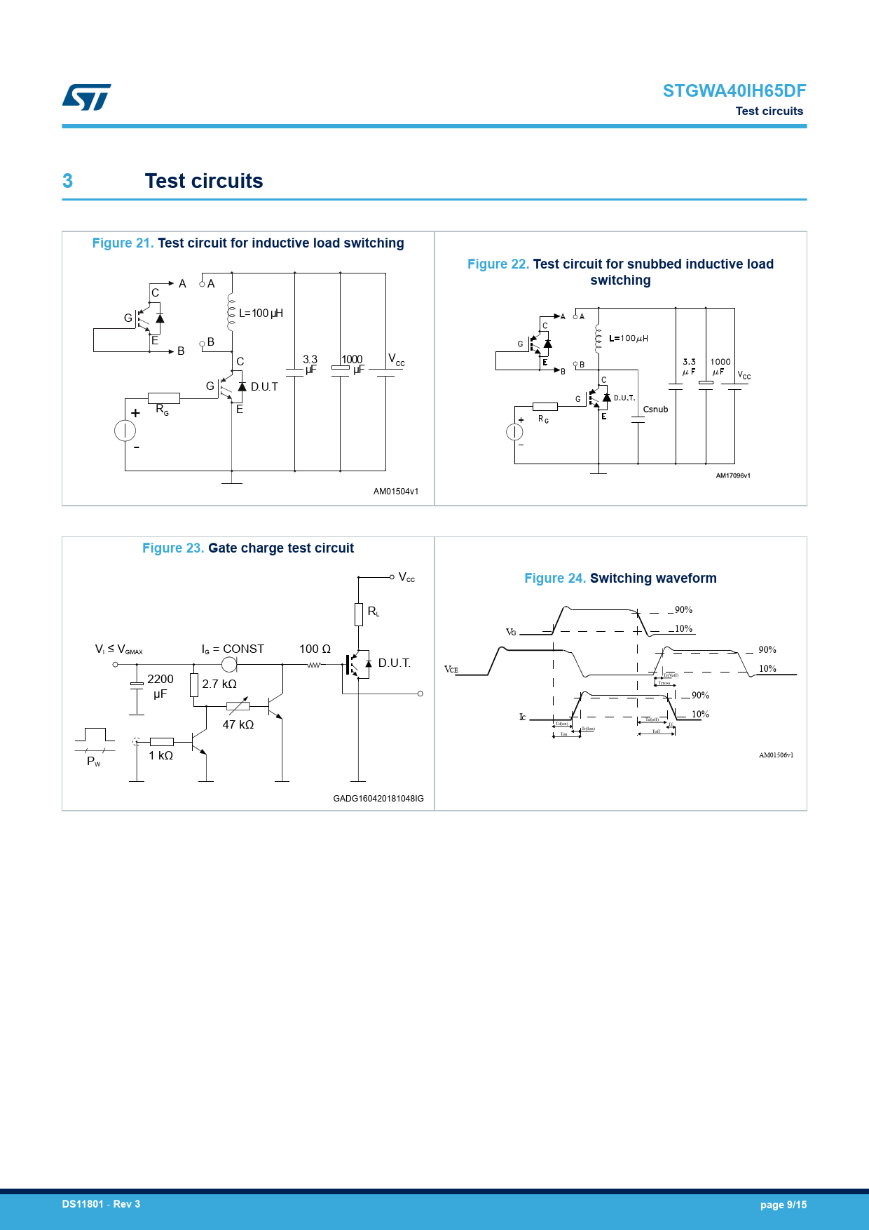 STGWA40IH65DF Test circuits 3 Test circuits Figure 21. Test circuit for inductive load switching Figure 22. Test circuit for snubbed inductive load