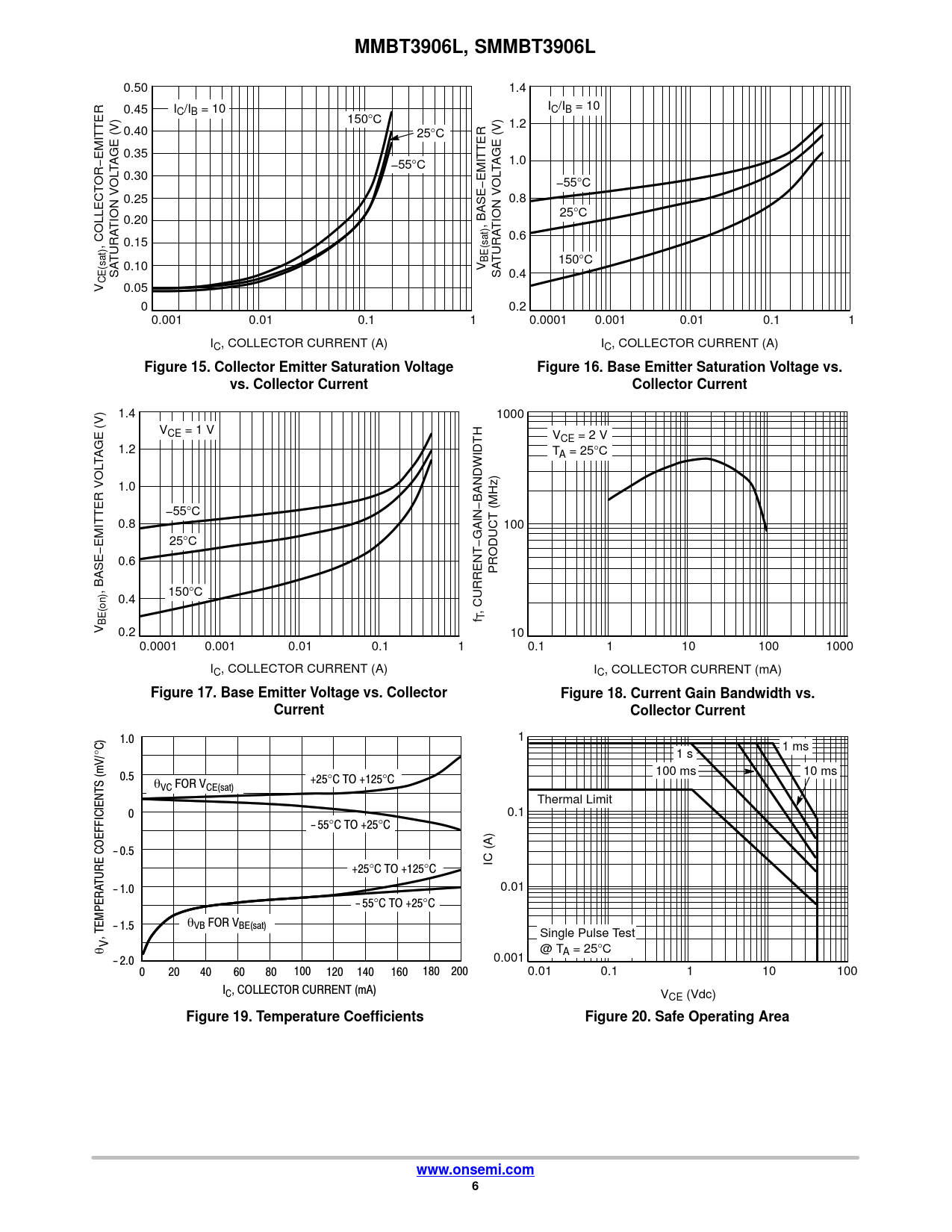 MMBT3906L, SMMBT3906L. Figure 15. Collector Emitter Saturation Voltage. Figure 16. Base Emitter Saturation Voltage vs