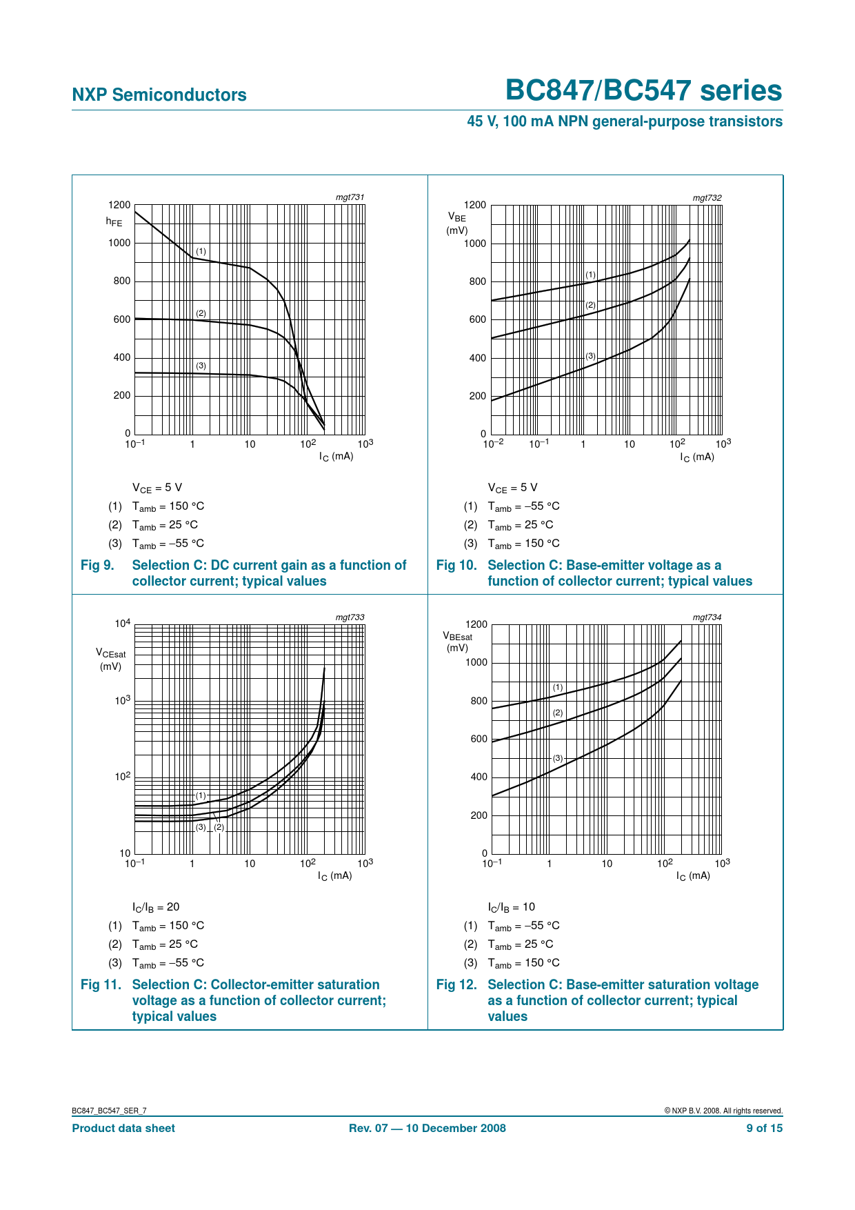 NXP Semiconductors. BC847/BC547 series. 45 V, 100 mA NPN general-purpose transistors. Fig 9