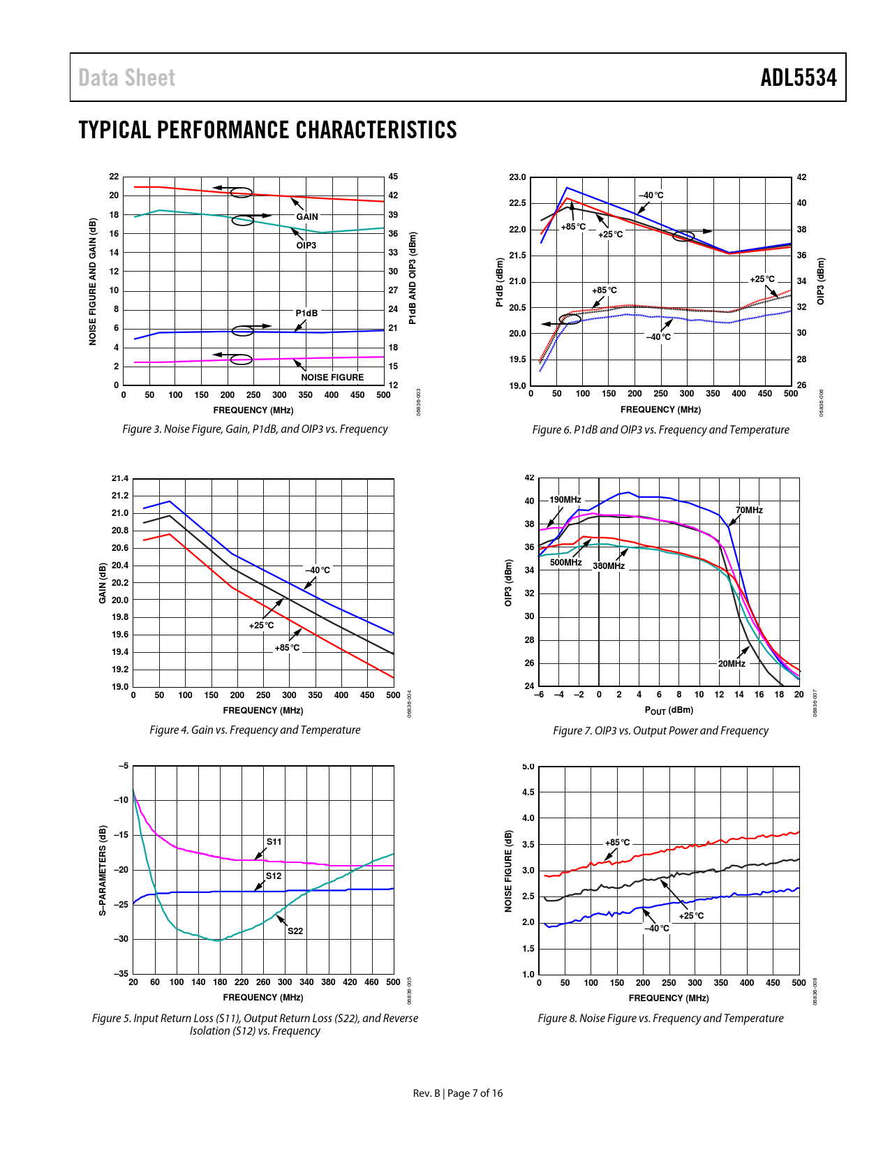 Data Sheet. ADL5534. TYPICAL PERFORMANCE CHARACTERISTICS. 23.0. –40°C. 22.5. GAIN. B) d. 22.0. +85°C. +25°C. N (. OIP3. Bm). 21.5. 3 (. AND G. 21.0. B (. URE