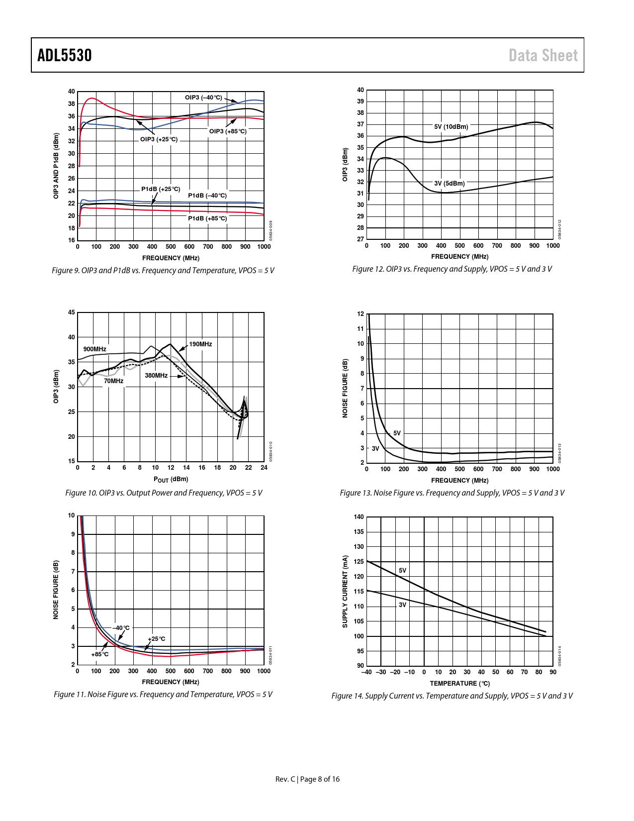 ADL5530. Data Sheet. OIP3 (–40°C). 5V (10dBm). OIP3 (+85°C). OIP3 (+25°C). B (. ( 3. ND P. OIP. 3V (5dBm). P1dB (+25°C). P1dB (–40°C)