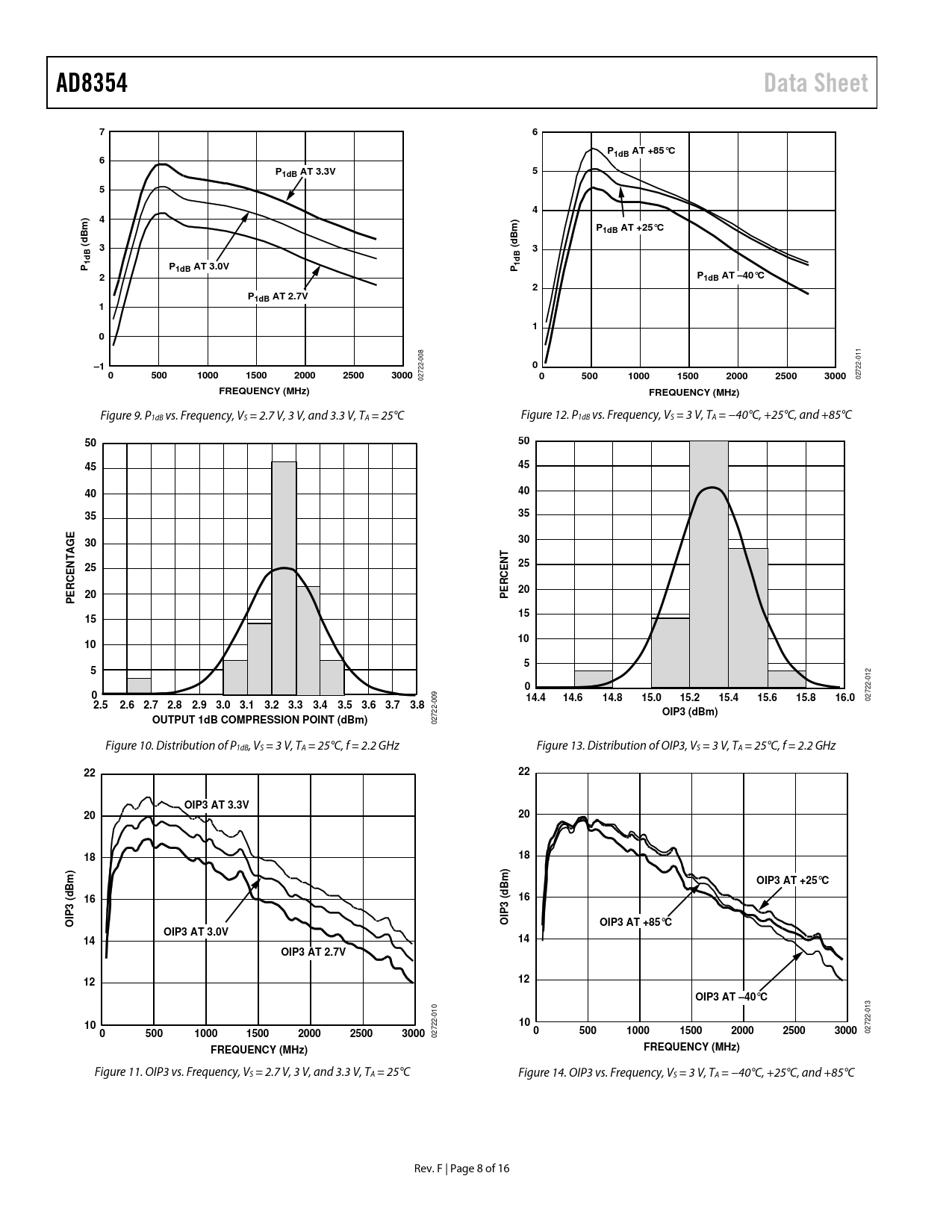 AD8354. Data Sheet. P1dB AT +85°C. P1dB AT 3.3V. P1dB AT +25°C. (dBm). 1dB. P1dB (dBm). P1dB AT 3.0V. P1dB AT –40°C. P1dB AT 2.7V. 500. 1000