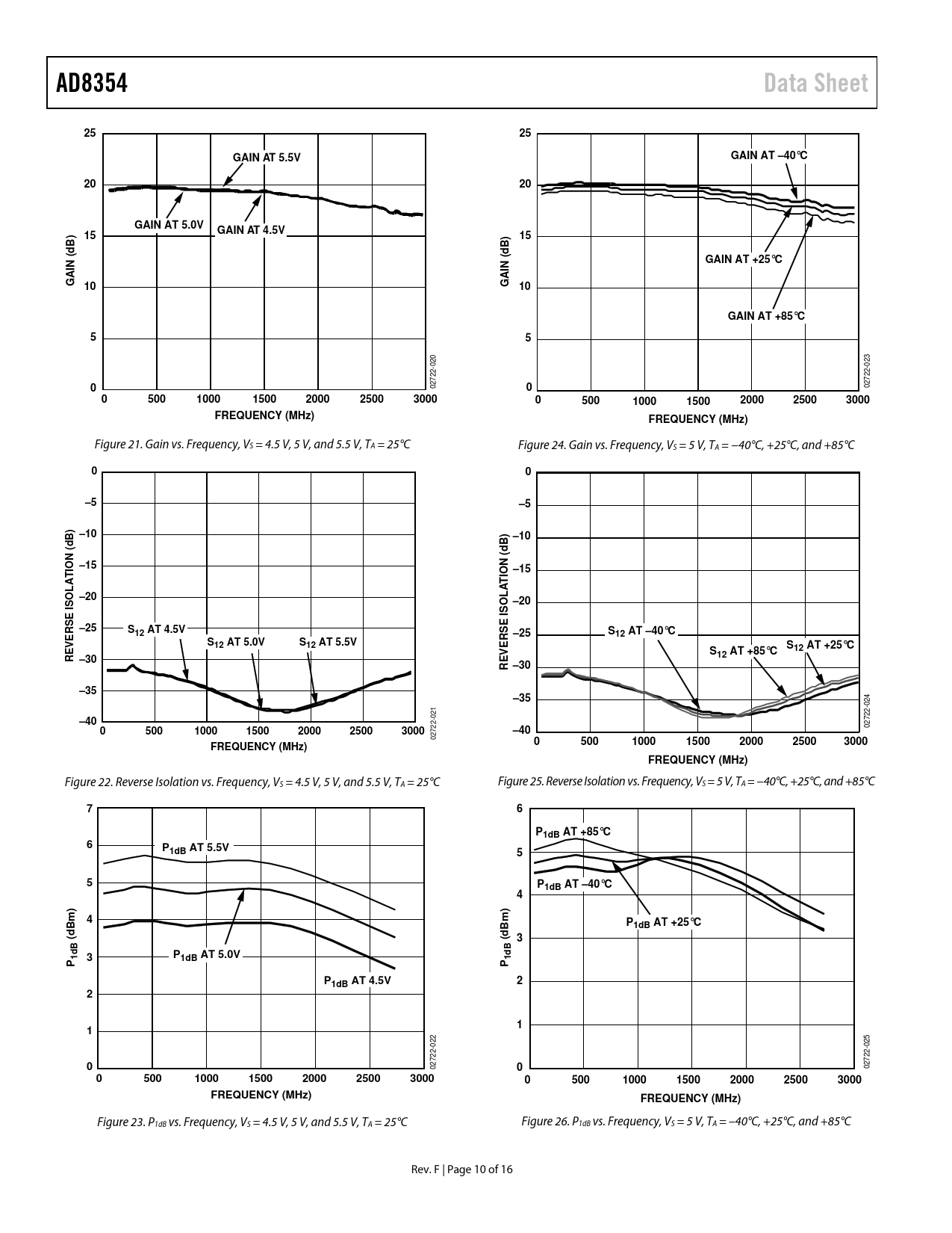 AD8354. Data Sheet. GAIN AT 5.5V. GAIN AT �. –40°C. GAIN AT 5.0V. GAIN AT 4.5V. GAIN AT +25°C. GAIN (dB) 10. GAIN (dB). GAIN AT +85°C. 500