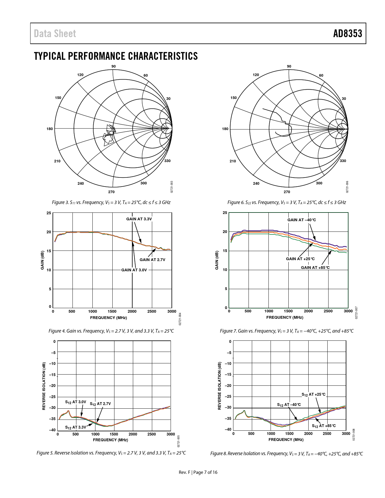 Data Sheet AD8353 TYPICAL PERFORMANCE CHARACTERISTICS 120 150 180 210 330 240 300 270 GAIN AT 3.3V GAIN AT –40°C GAIN AT 2.7V