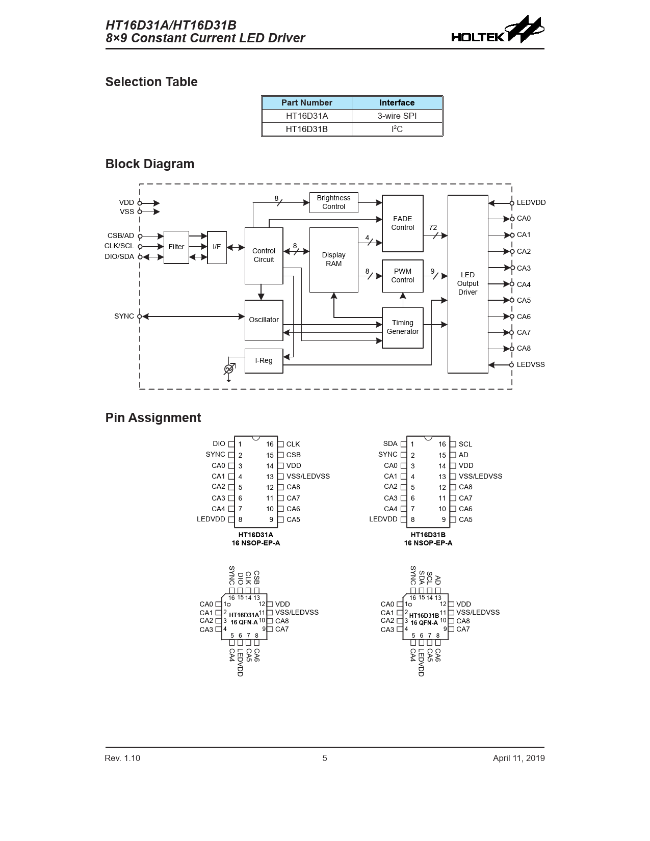 Datasheet HT16D31A/HT16D31B (Holtek) - 5