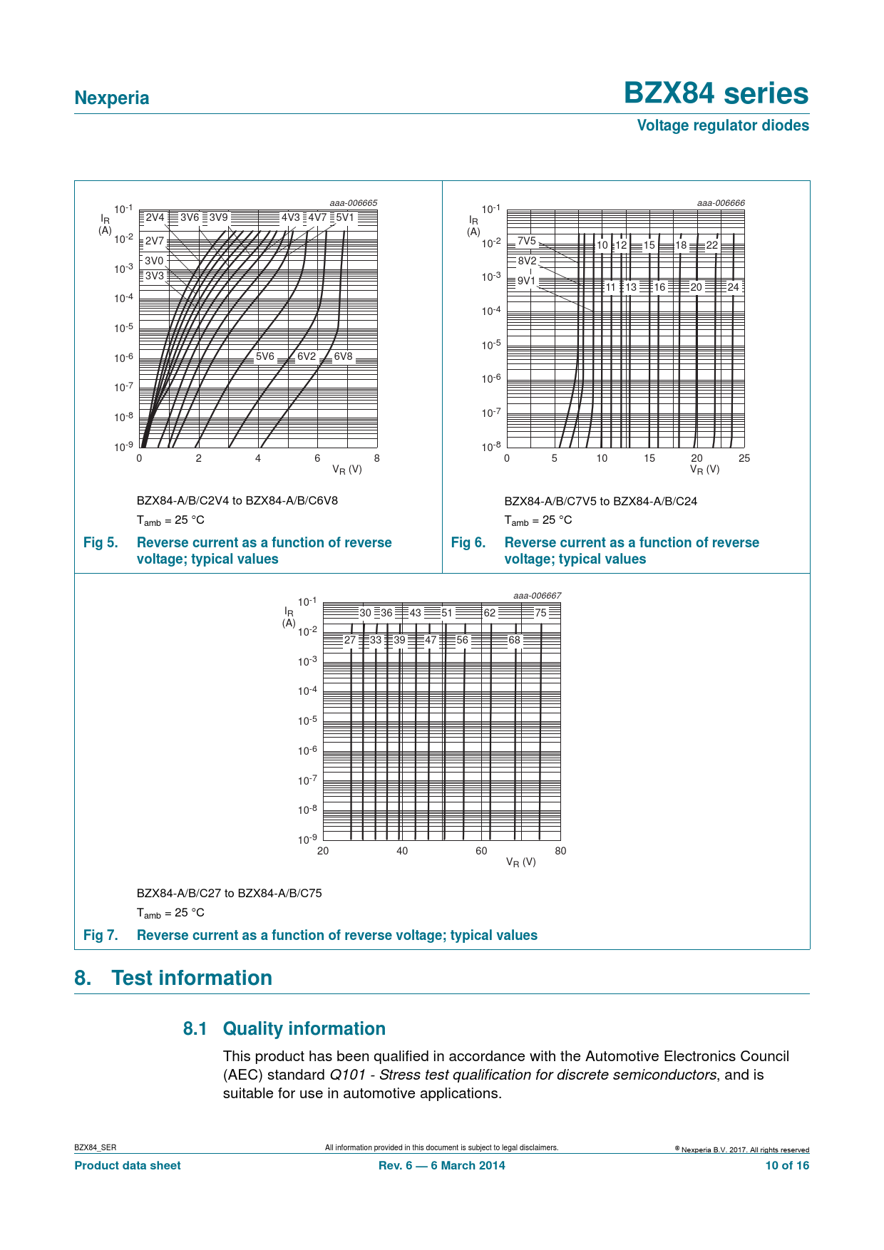 This product has been qualified in accordance with the Automotive Electronics Council (AEC) standard Q101 - Stress test qualification for discrete semiconductors, and is suitable for use in automotive applications. BZX84_SER All information provided in this document is subject to legal disclaimers. © Nexperia B.V. 2017. All rights reserved