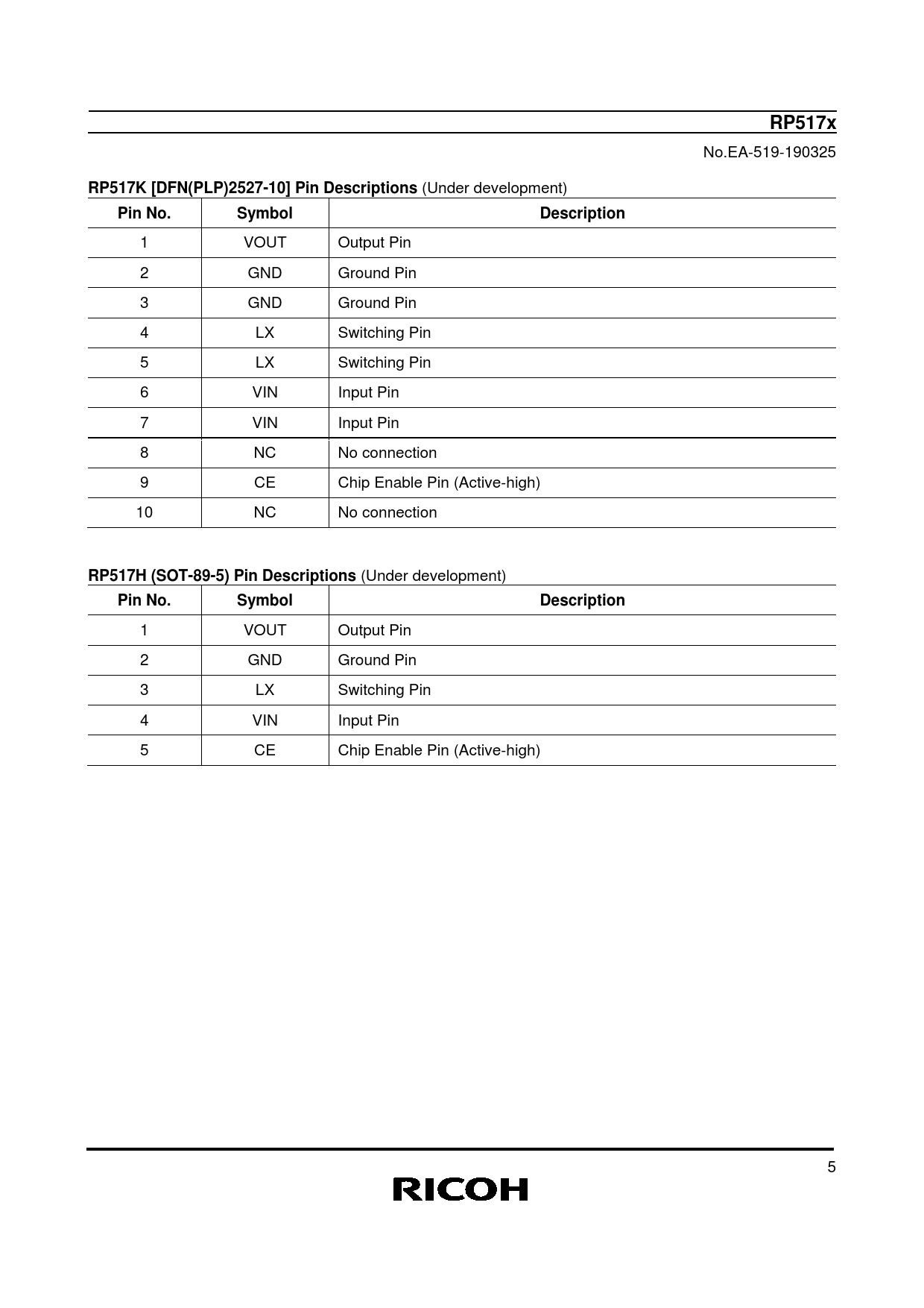 Datasheet RP517x (Ricoh) - 5