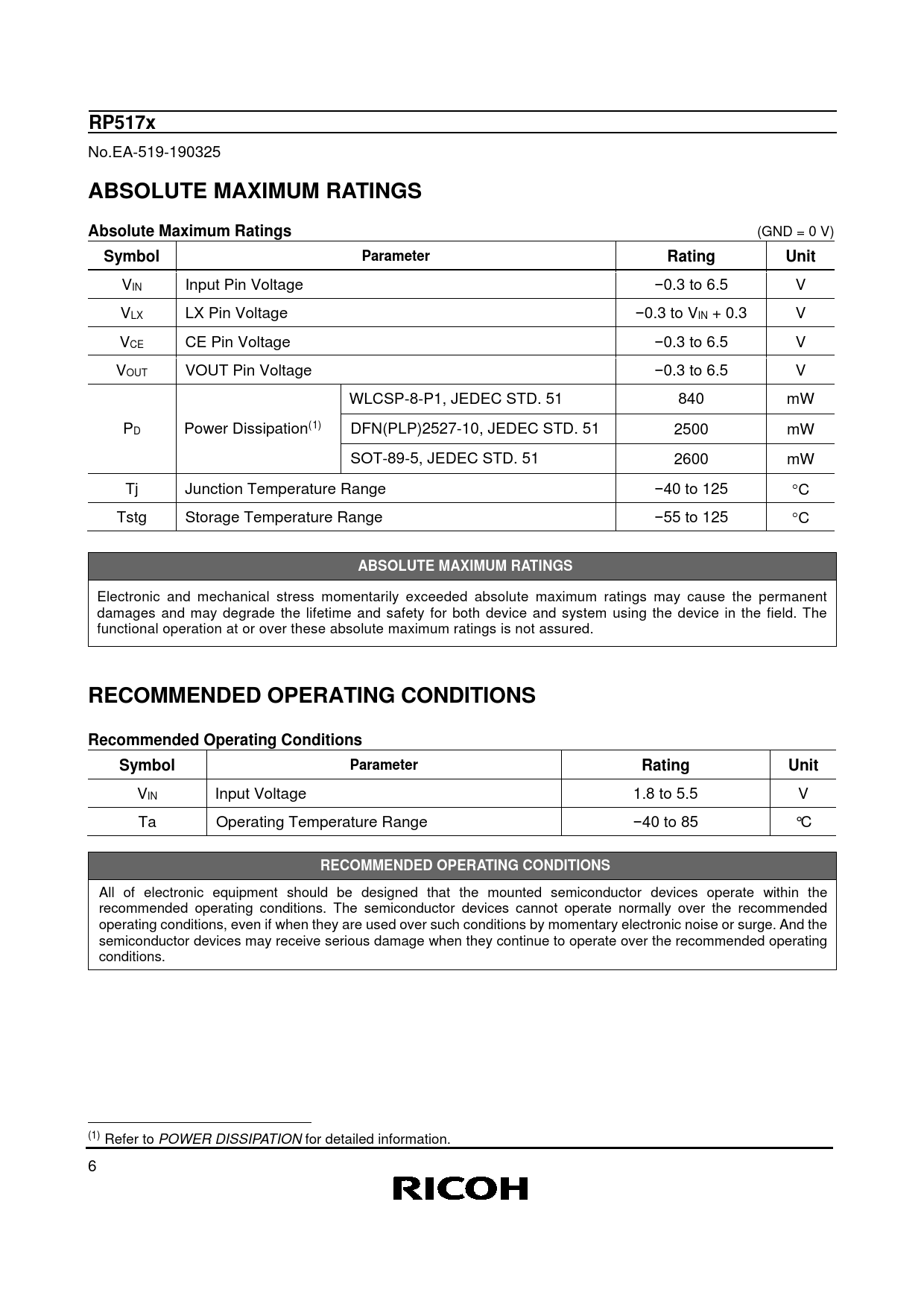 Datasheet RP517x (Ricoh) - 6
