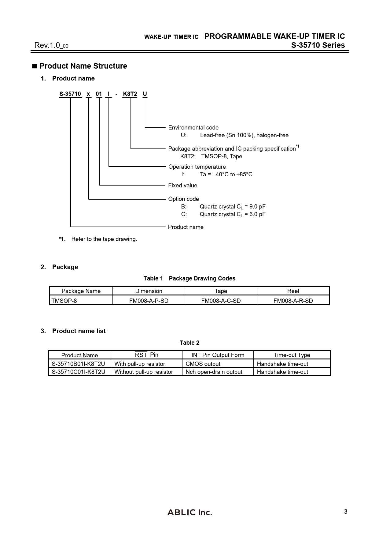 WAKE-UP TIMER IC PROGRAMMABLE WAKE-UP TIMER IC. S-35710 Series. Product Name Structure. 1. Product name