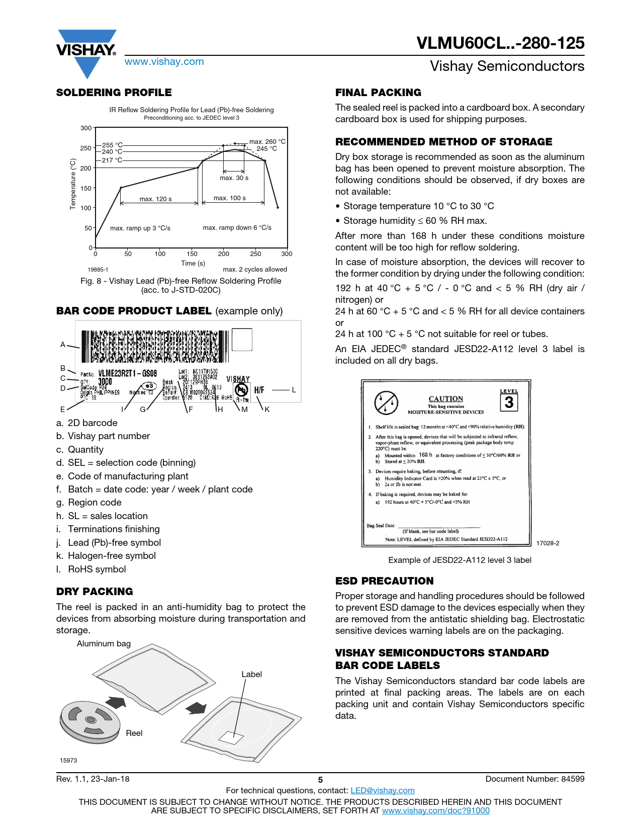 VLMU60CL..-280-125. SOLDERING PROFILE. FINAL PACKING. RECOMMENDED METHOD OF STORAGE. BAR CODE PRODUCT LABEL. 168 h. ESD PRECAUTION