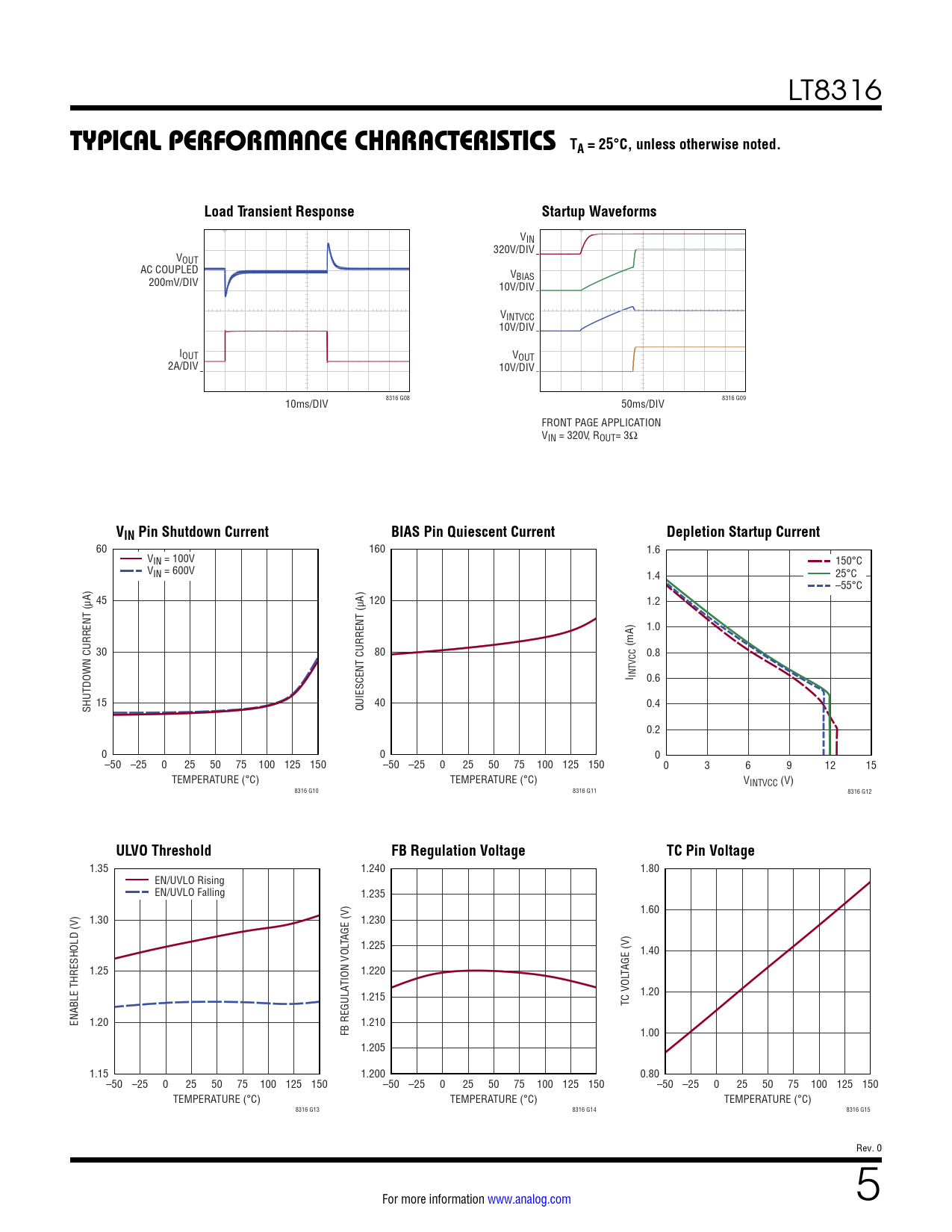 1.35 1.240 1.80 EN/UVLO Rising EN/UVLO Falling 1.235 1.60 1.30 1.230 TAGE (V) 1.225 1.40 1.25 1.220 TAGE (V) TION VOL 1.215 1.20 TC VOL ENABLE THRESHOLD (V) 1.20 1.210 FB REGULA 1.00 1.205 1.15 1.200 0.80 –50 –25 0 25 50 75 100 125 150 –50 –25 0 25 50 75 100 125 150 –50 –25 0 25 50 75 100 125 150 TEMPERATURE (°C) TEMPERATURE (°C) TEMPERATURE (°C) 8316 G13 8316 G14 8316 G15 Rev. 0 For more information www.analog.com 5 Document Outline Features Applications Typical Application Description Absolute Maximum Ratings Order Information Pin Configuration Electrical Characteristics Typical Performance Characteristics Pin Functions Block Diagram Operation Applications Information Package Description Typical Application Related Parts