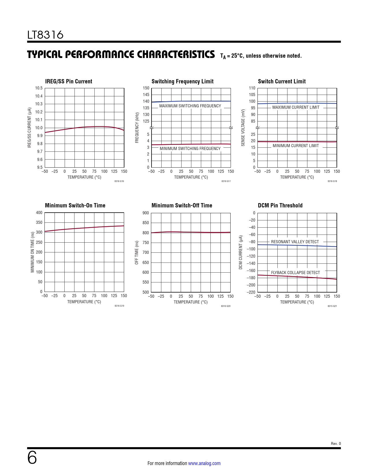 400 900 0 350 –20 850 –40 300 800 –60 250 750 –80 RESONANT VALLEY DETECT –100 200 700 –120 150 OFF TIME (ns) 650 –140 DCM CURRENT (µA) MINIMUM ON TIME (ns) 100 600 –160 FLYBACK COLLAPSE DETECT –180 50 550 –200 0 500 –220 –50 –25 0 25 50 75 100 125 150 –50 –25 0 25 50 75 100 125 150 –50 –25 0 25 50 75 100 125 150 TEMPERATURE (°C) TEMPERATURE (°C) TEMPERATURE (°C) 8316 G19 8316 G20 8315 G21 Rev. 0 6 For more information www.analog.com Document Outline Features Applications Typical Application Description Absolute Maximum Ratings Order Information Pin Configuration Electrical Characteristics Typical Performance Characteristics Pin Functions Block Diagram Operation Applications Information Package Description Typical Application Related Parts