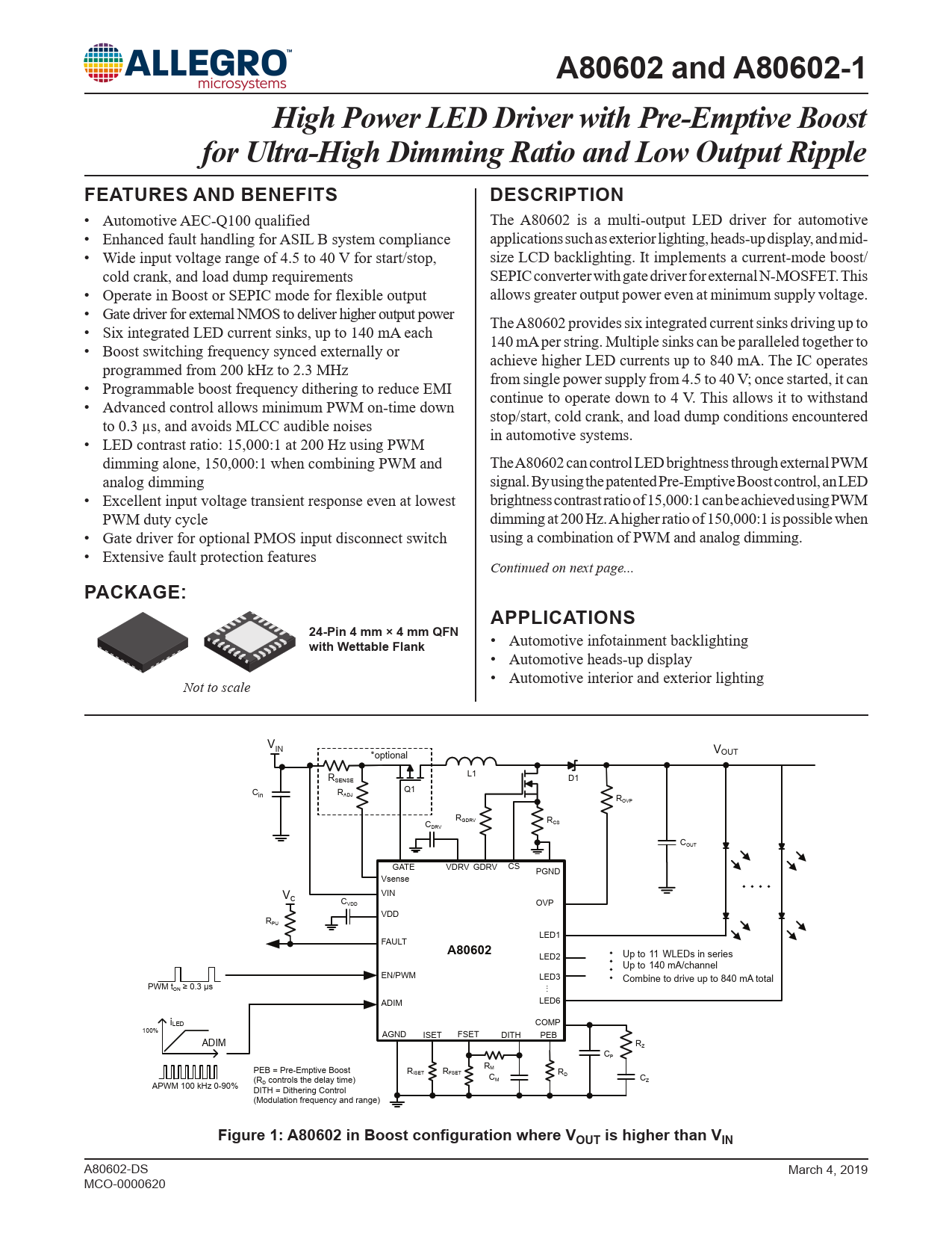 A80602 and A80602-1. High Power LED Driver with Pre-Emptive Boost. for Ultra-High Dimming Ratio and Low Output Ripple