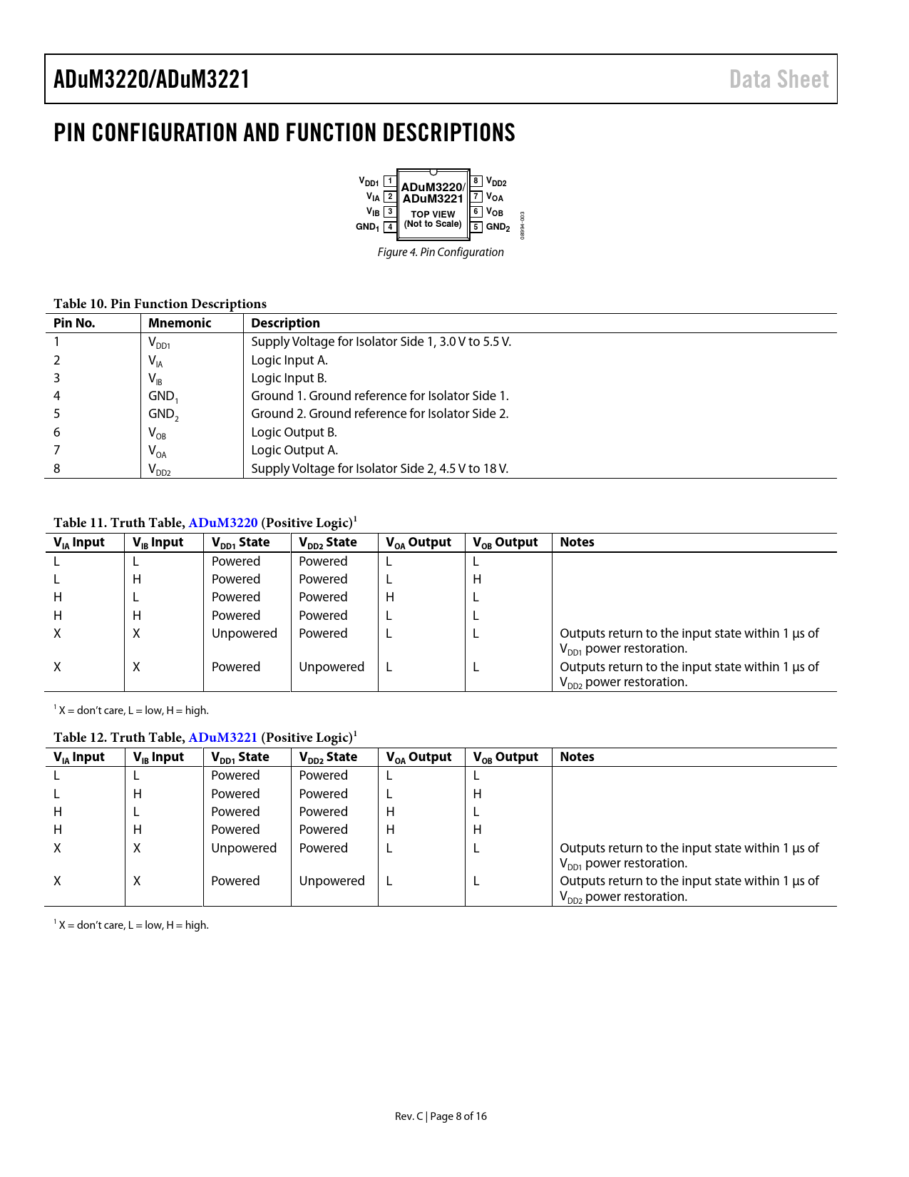 Páginas / Página16 / 8 — ADuM3220/ADuM3221. Data Sheet. PIN CONFIGURATION AND FUNCTION …