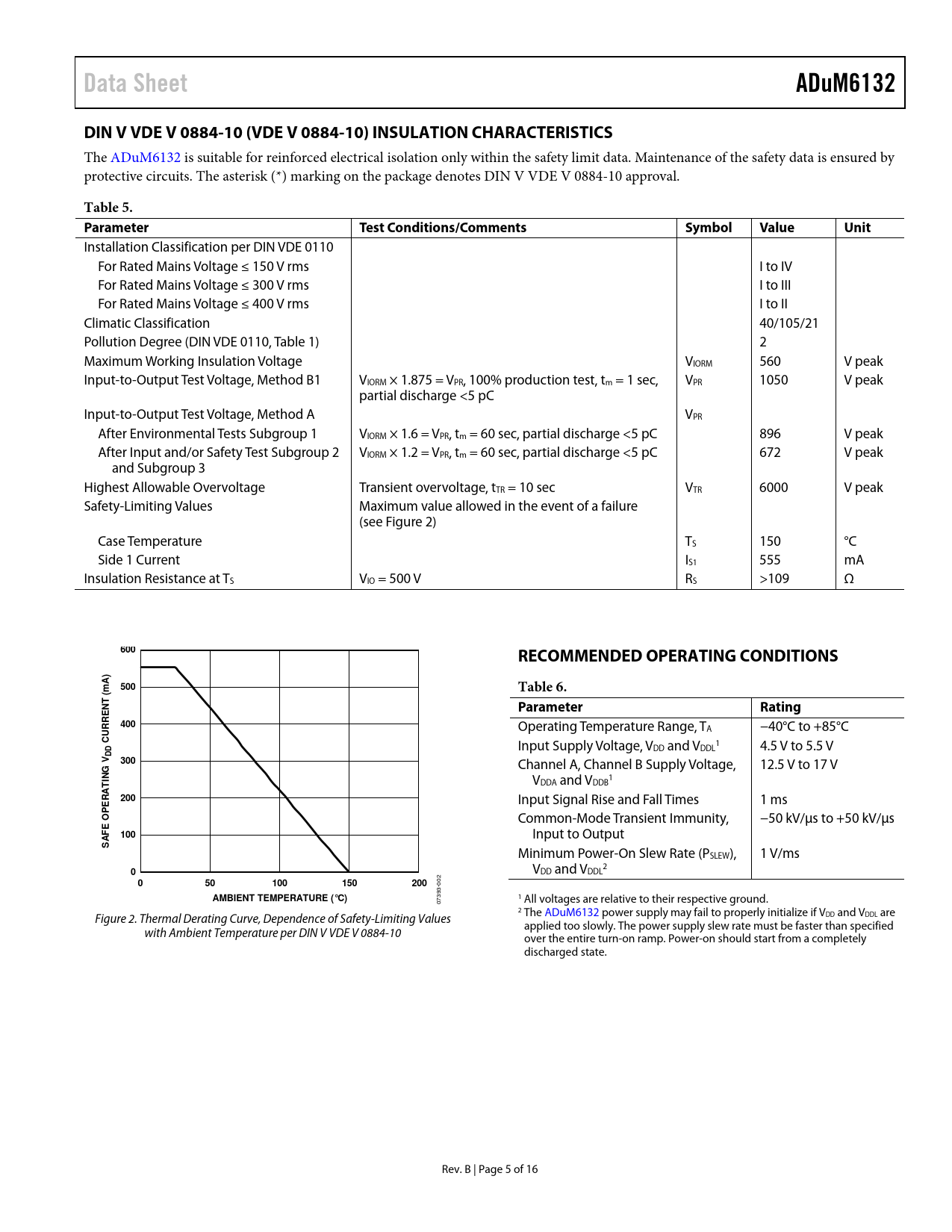 Páginas / Página16 / 5 — Data Sheet. ADuM6132. DIN V VDE V 0884-10 (VDE V 0884-10) INSULATION …
