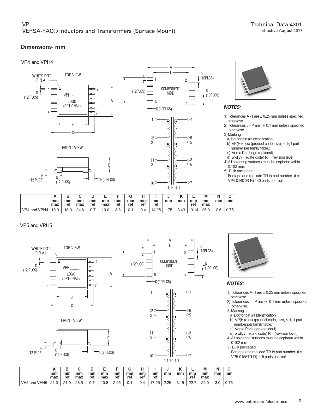 VP Technical Data 4301 VERSA-PAC® Inductors and Transformers (Surface Mount) Effective August 2017