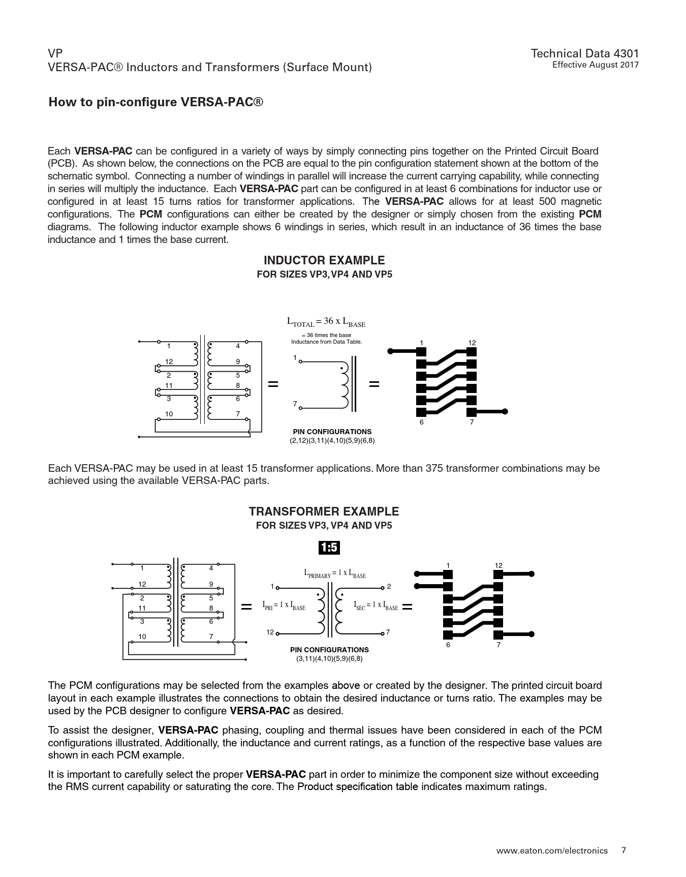 How to pin-configure VERSA-PAC® VERSA-PAC PCM INDUCTOR EXAMPLE FOR SIZES VP3, VP4 AND VP5 PIN CONFIGURATIONS