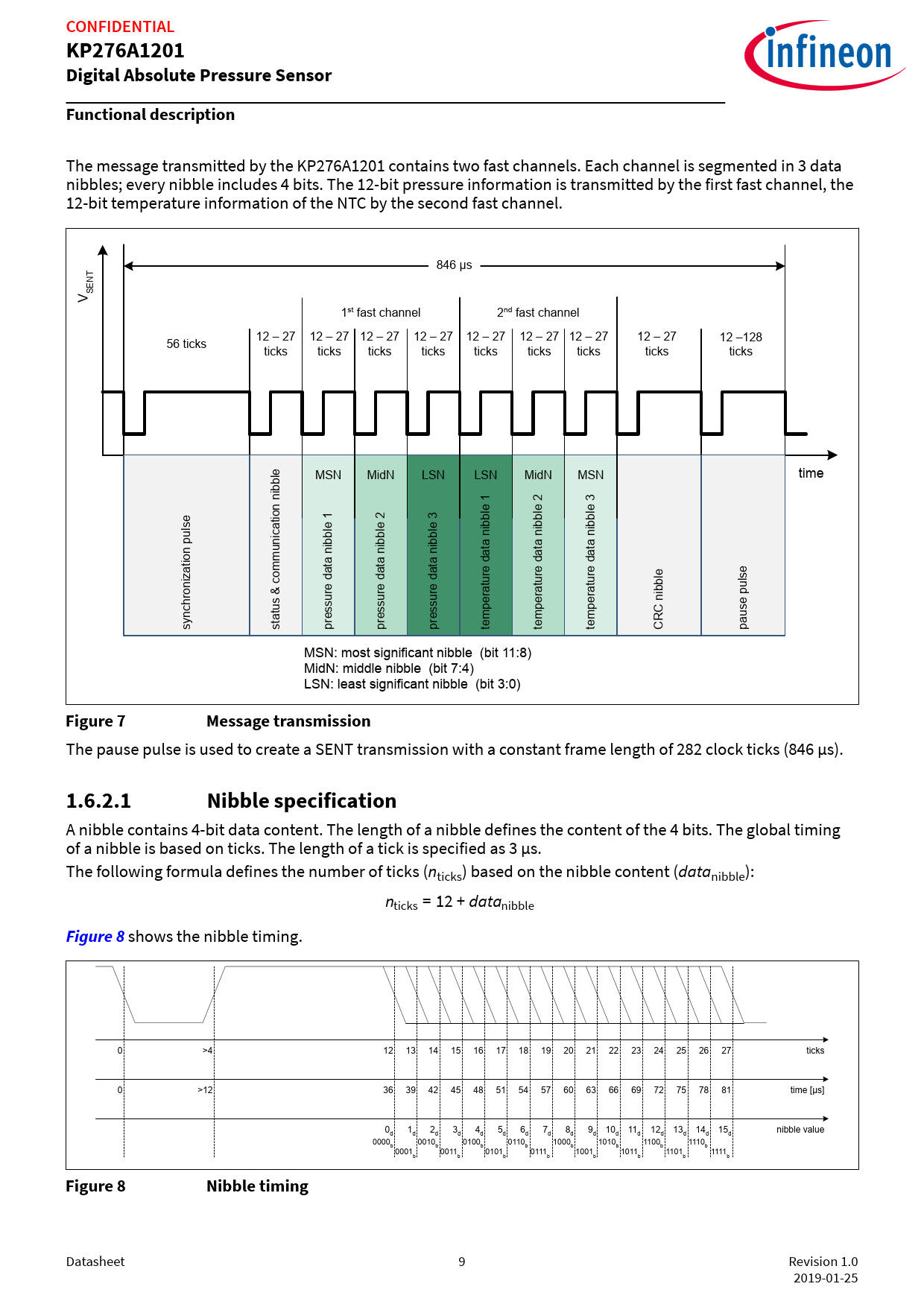 CONFIDENTIAL KP276A1201 Digital Absolute Pressure Sensor Functional description Figure 7 Message transmission 1.6.2.1