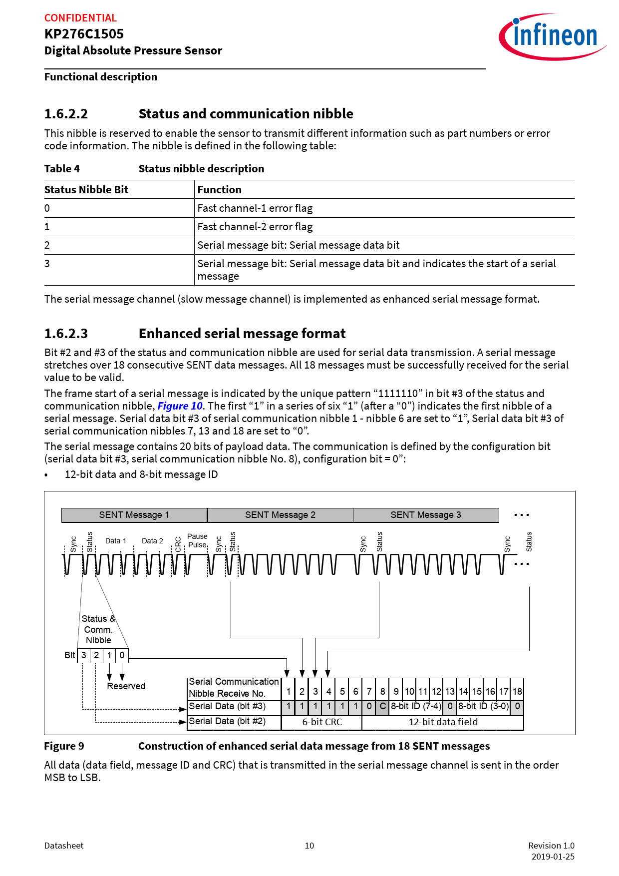 CONFIDENTIAL KP276C1505 Digital Absolute Pressure Sensor Functional description 1.6.2.2 Status and communication nibble