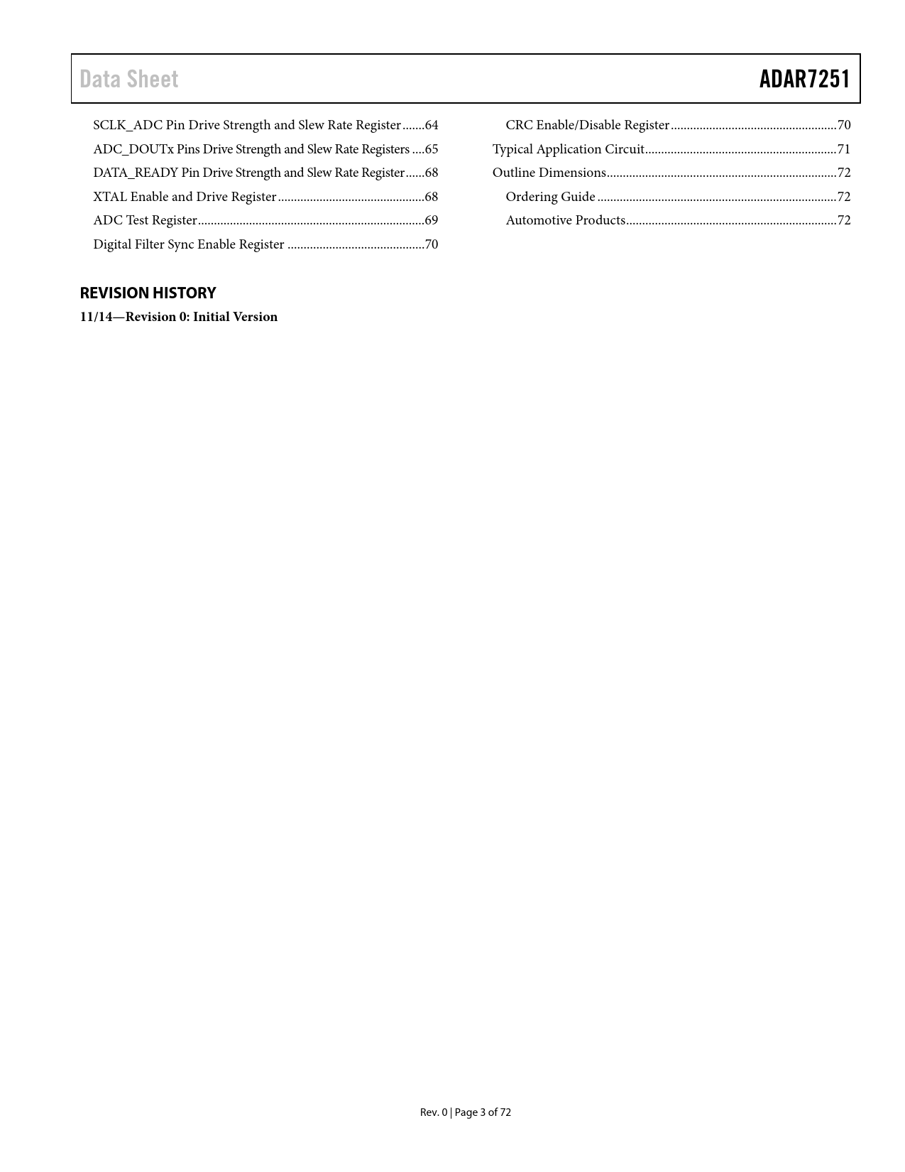 Páginas / Página72 / 3 — Data Sheet. ADAR7251. REVISION HISTORY. 11/14—Revision 0: Initial Version