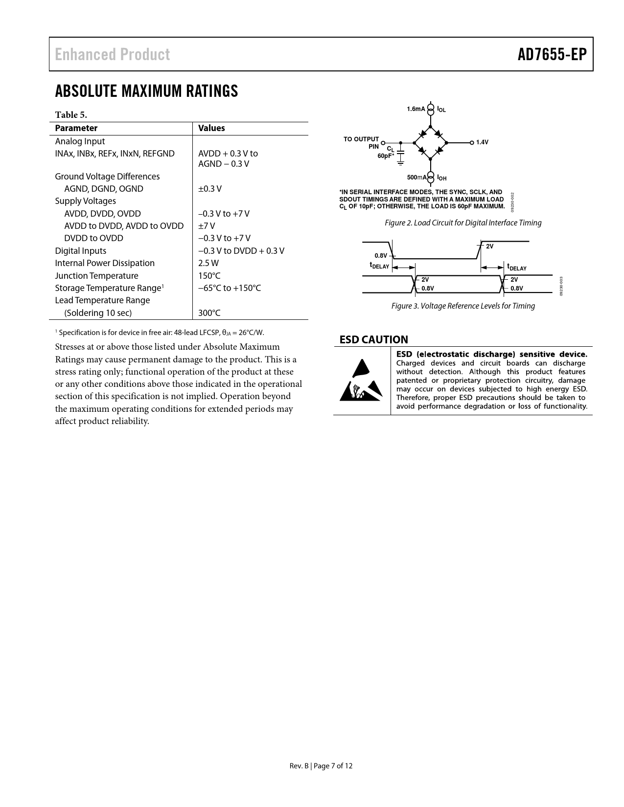 Páginas / Página12 / 7 — Enhanced Product. AD7655-EP. ABSOLUTE MAXIMUM RATINGS Table 5. 1.6mA. …