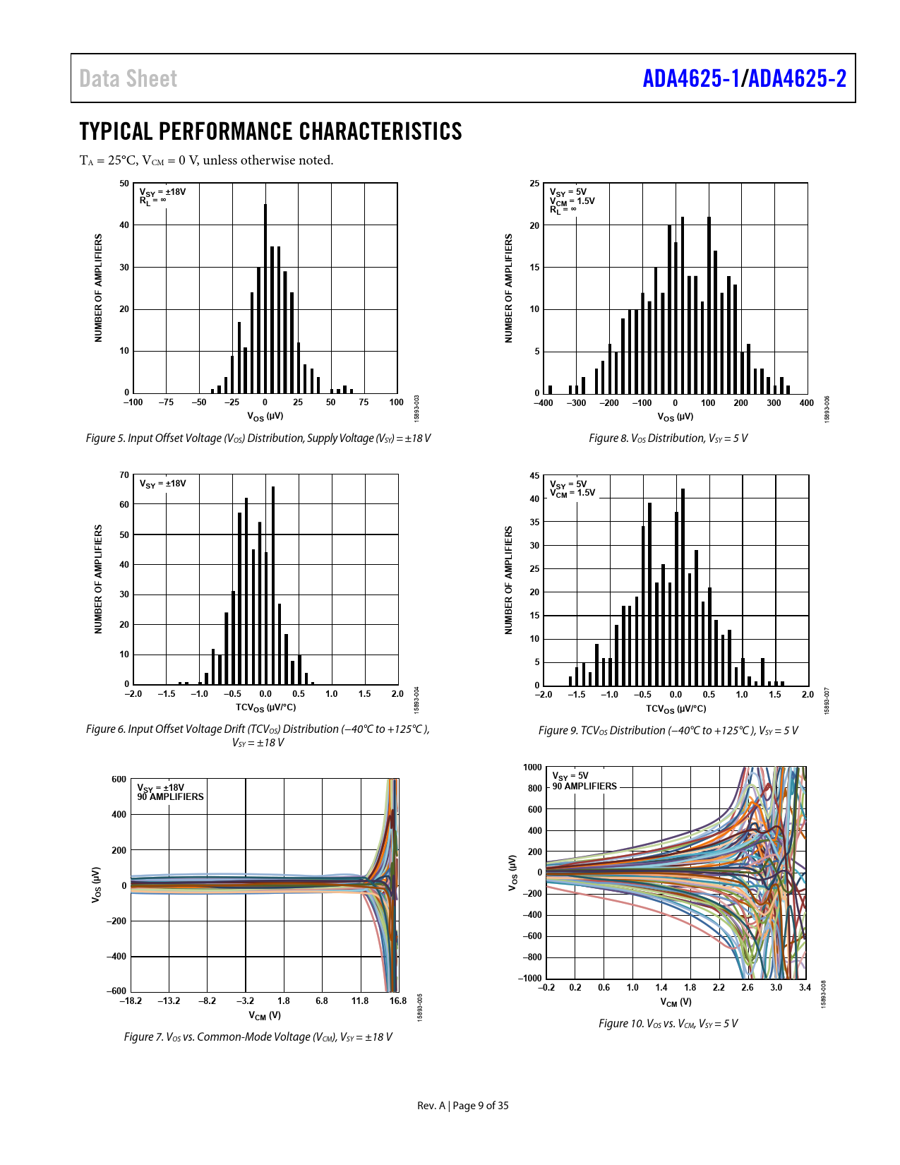 Data Sheet. ADA4625-1/. ADA4625-2. TYPICAL PERFORMANCE CHARACTERISTICS. VSY = ±18V. SY = 5V. L = ∞. VCM = 1.5V. RL = ∞. PLIFIERS. F AM. R O