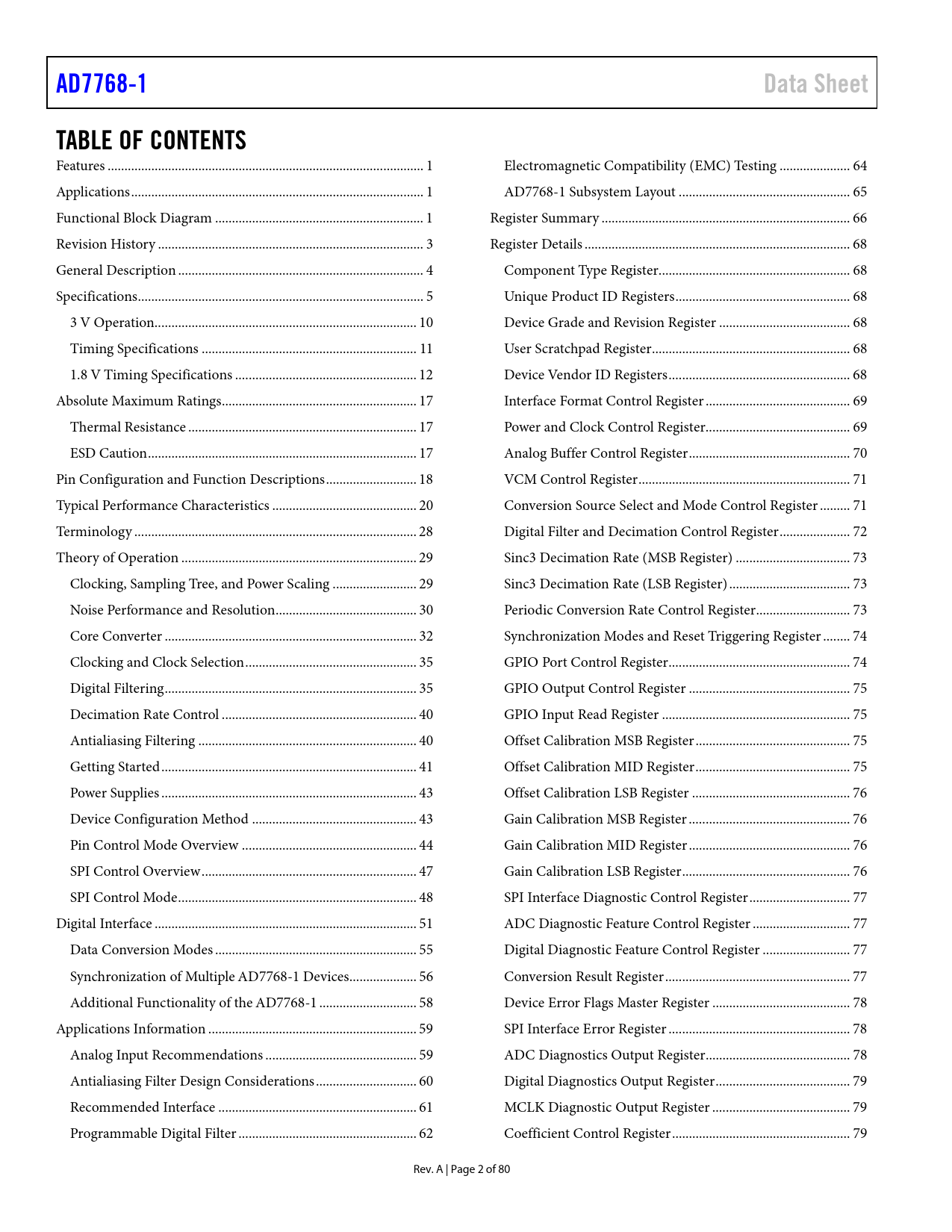 Páginas / Página80 / 2 — AD7768-1. Data Sheet. TABLE OF CONTENTS