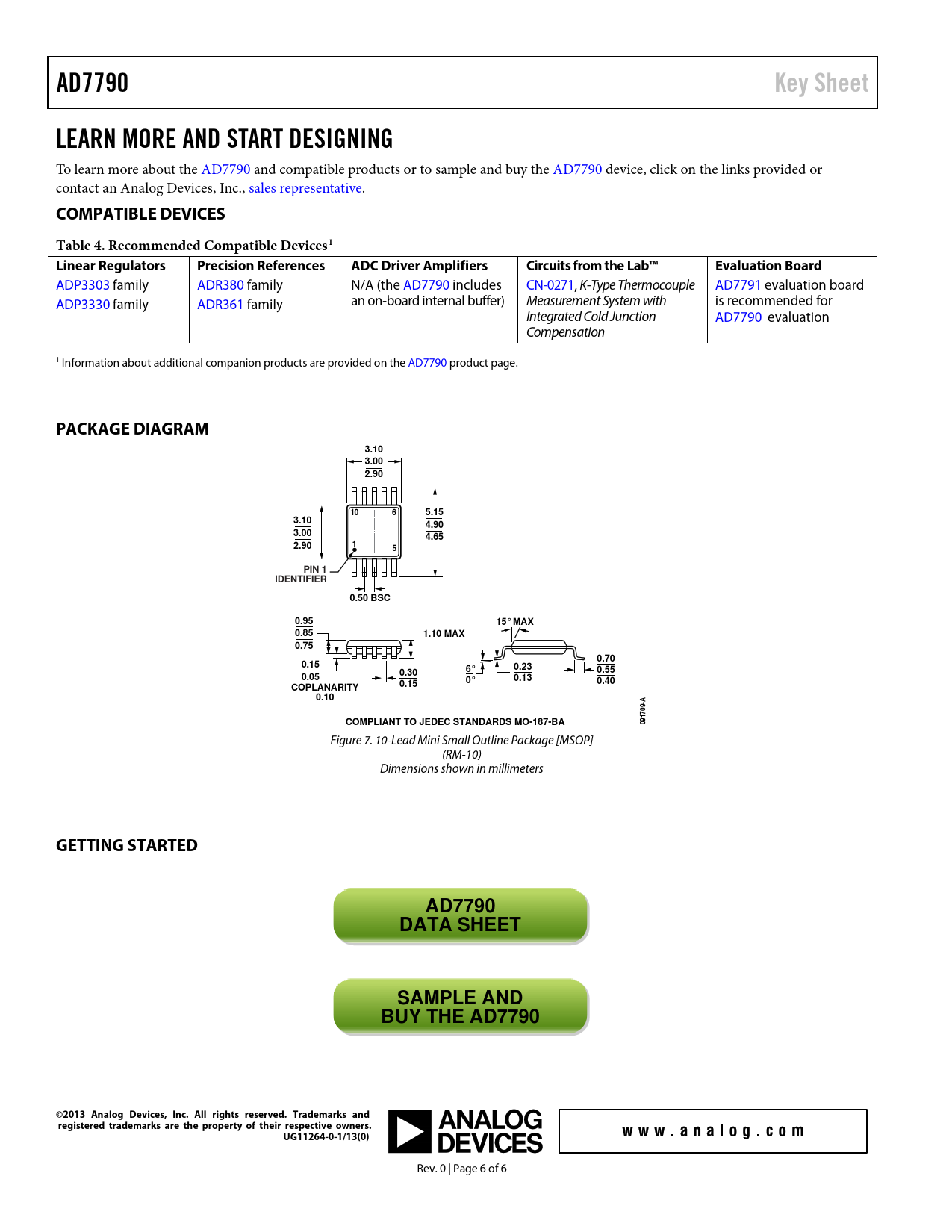 | Páginas / Página | 6 / 6 — AD7790. Key Sheet. LEARN MORE AND START DESIGNING. COMPATIBLE DEVICES. … |