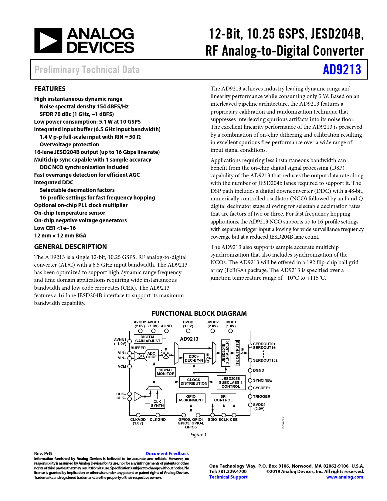 12-Bit, 10.25 GSPS, JESD204B, RF Analog-to-Digital Converter Preliminary Technical Data AD9213 FEATURES