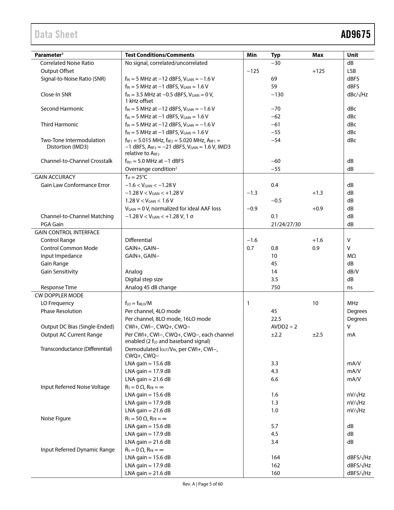 Páginas / Página60 / 5 — Data Sheet. AD9675. Parameter1 T. est. Conditions/Comments. Min. Typ. …