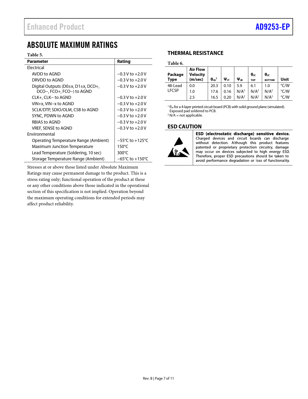Páginas / Página11 / 7 — Enhanced Product. AD9253-EP. ABSOLUTE MAXIMUM RATINGS Table 5. THERMAL …