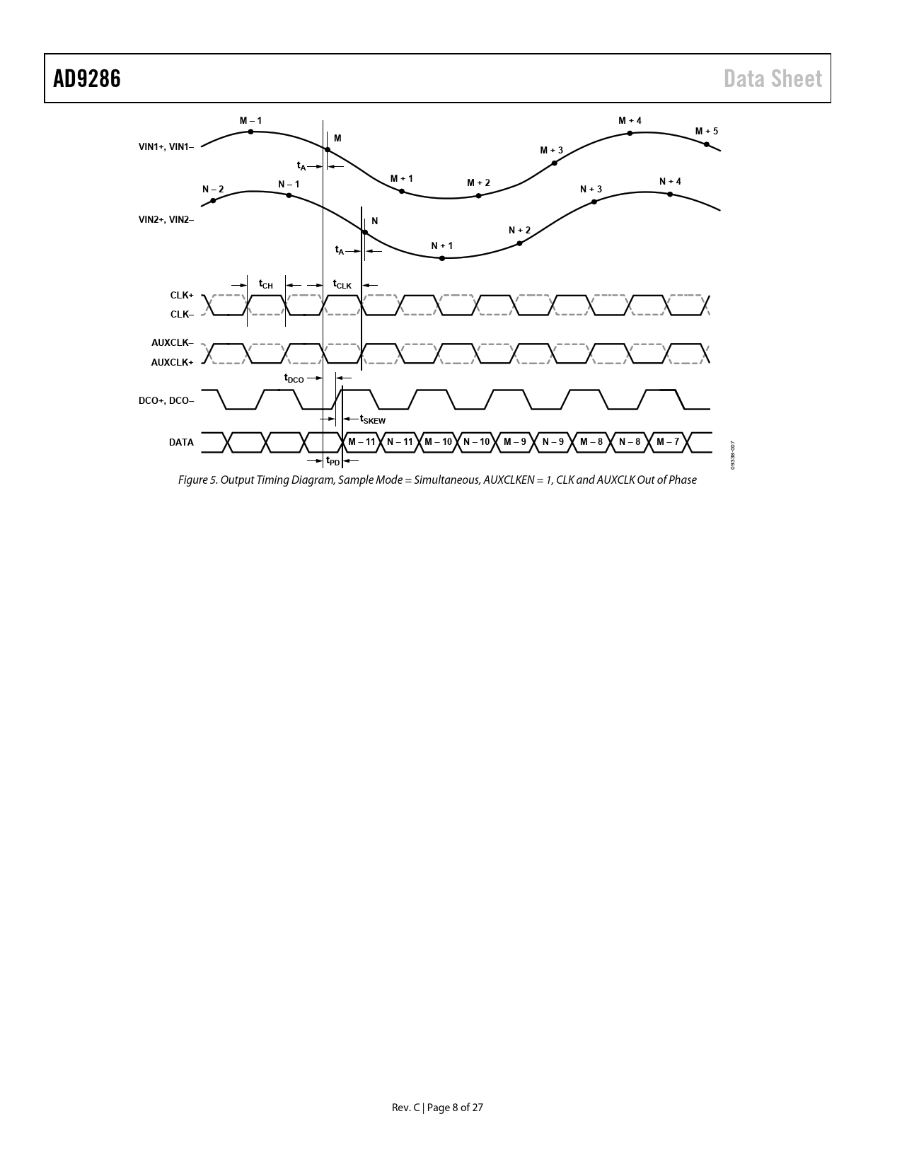 AD9286. Data Sheet. M – 1. M + 4. M + 5. VIN1+, VIN1–. M + 3. M + 1. N – 1. M + 2. N + 4. N – 2. N + 3. VIN2+, VIN2–. N + 2. N + 1. tCH. tCLK. CLK+. CLK–