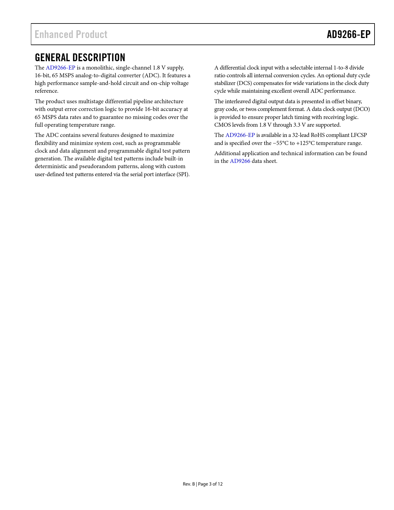 Páginas / Página12 / 3 — Enhanced Product. AD9266-EP. GENERAL DESCRIPTION