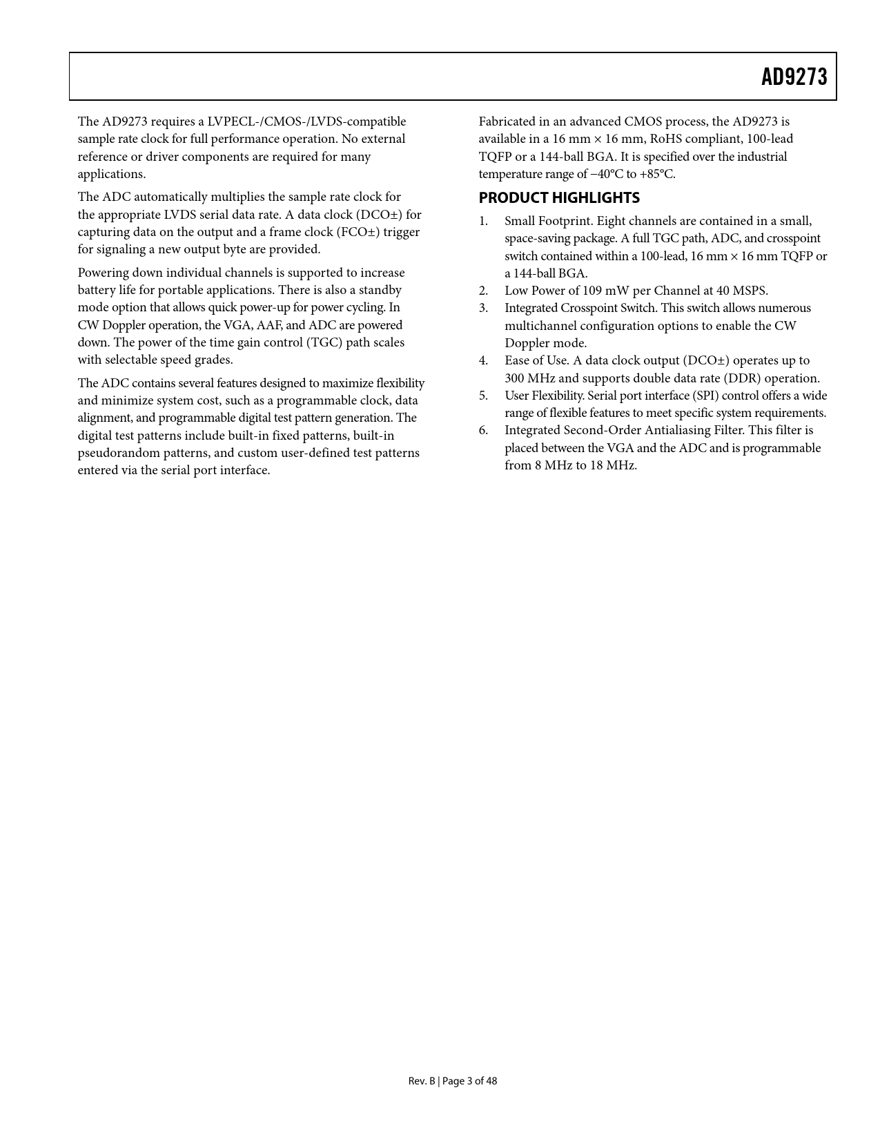 Páginas / Página48 / 3 — AD9273. PRODUCT HIGHLIGHTS