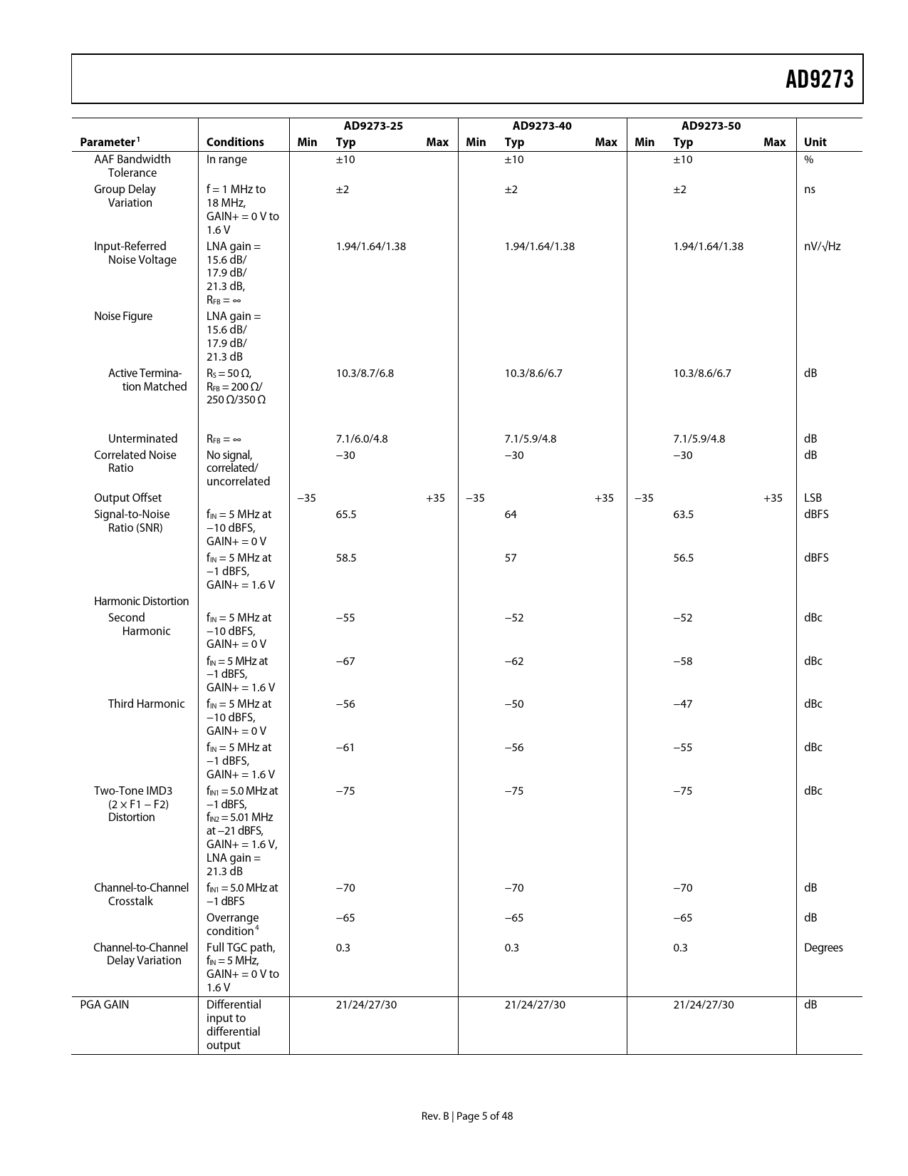 AD9273 AD9273-25 AD9273-40 AD9273-50 Parameter1 Conditions Min Typ Max Min Typ Max Min Typ Max Unit