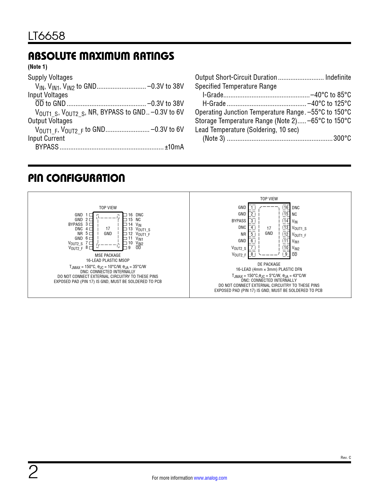 Datasheet LT6658 (Analog Devices) - 2