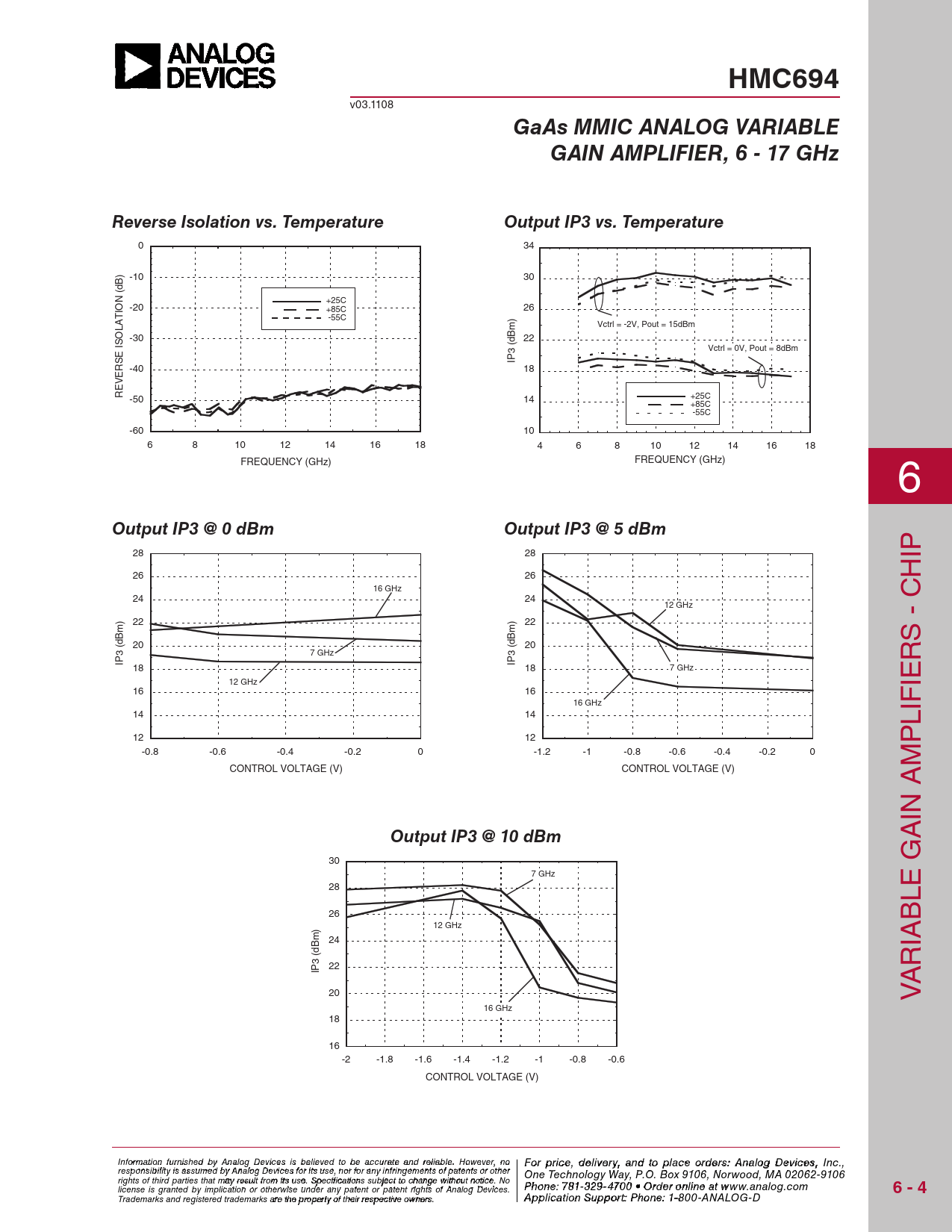 Páginas / Página8 / 4 — HMC694. GaAs MMIC ANALOG VARIABLE. GAIN AMPLIFIER, 6 - 17 GHz. Reverse …