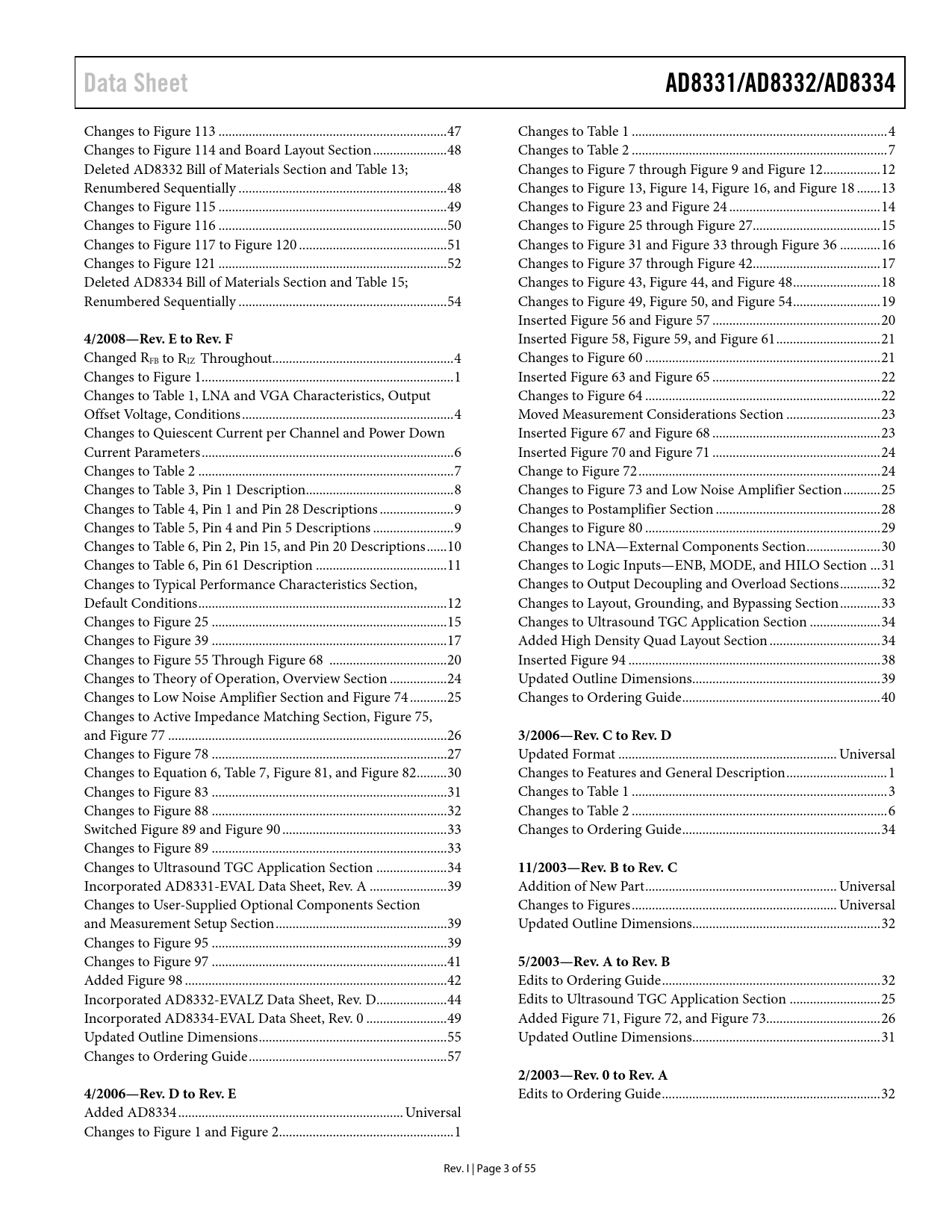 Páginas / Página55 / 3 — Data Sheet. AD8331/AD8332/AD8334. 4/2008—Rev. E to Rev. F. 3/2006—Rev. C …