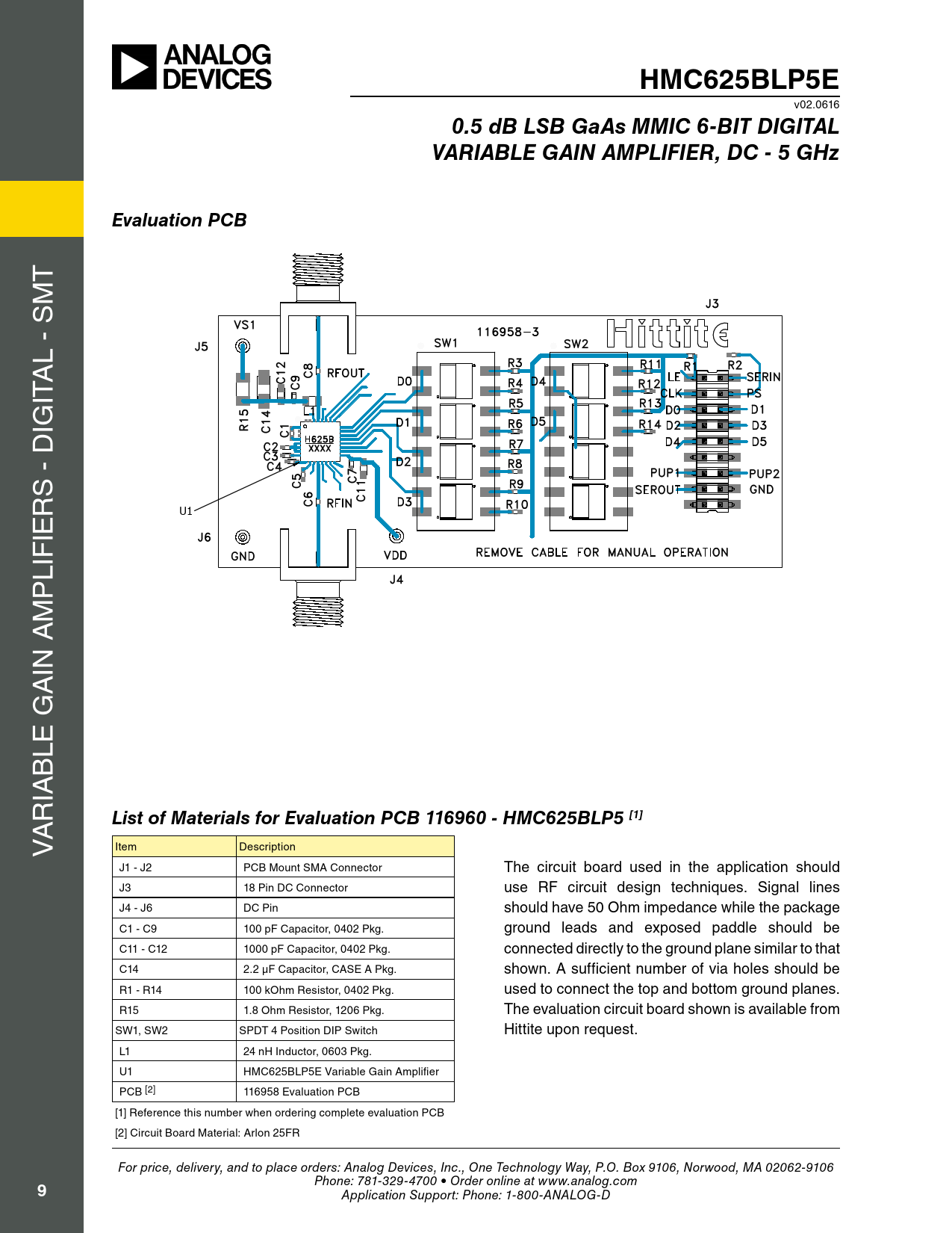 List of Materials for Evaluation PCB 116960 - HMC625BLP5 [1]