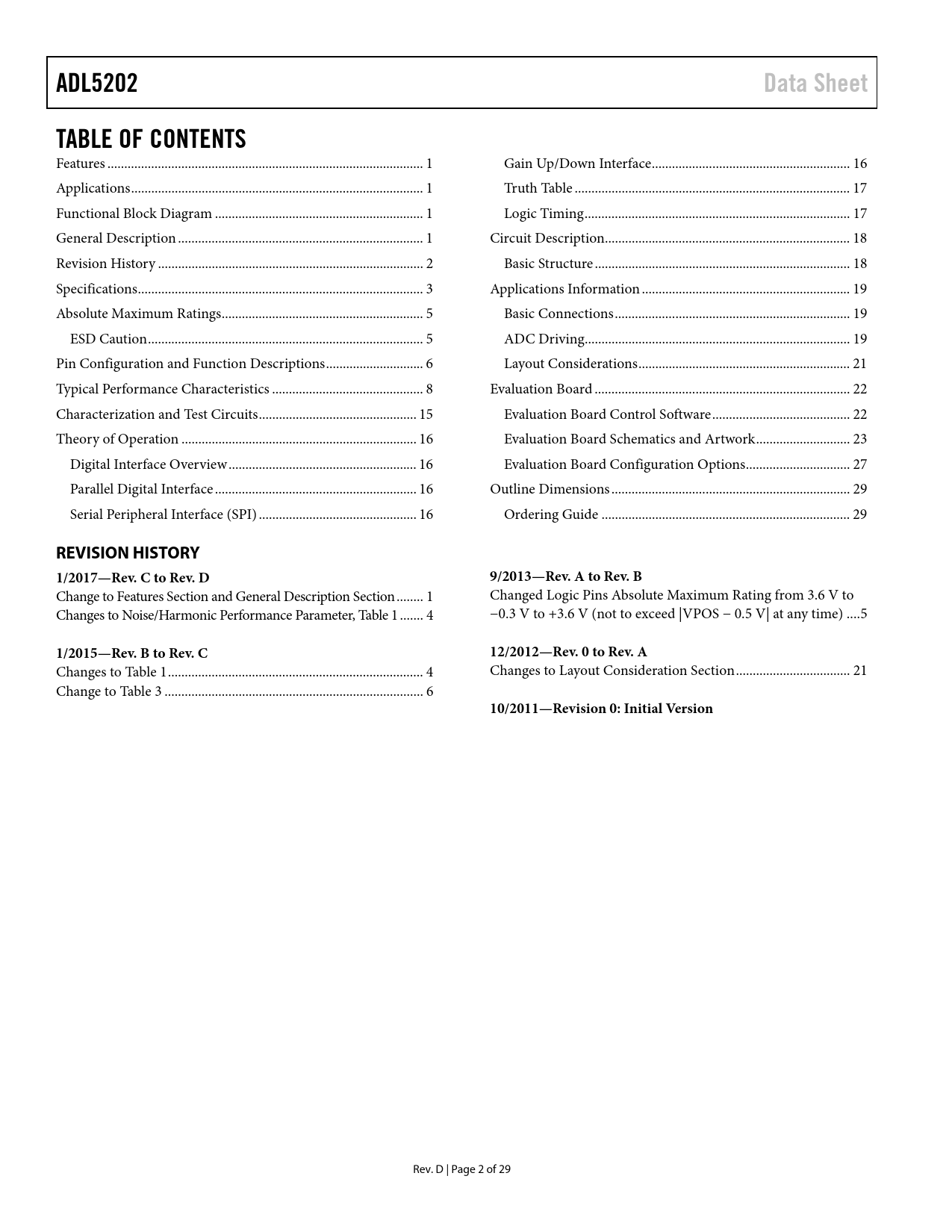Páginas / Página29 / 2 — ADL5202. Data Sheet. TABLE OF CONTENTS. REVISION HISTORY. 1/2017—Rev. C …