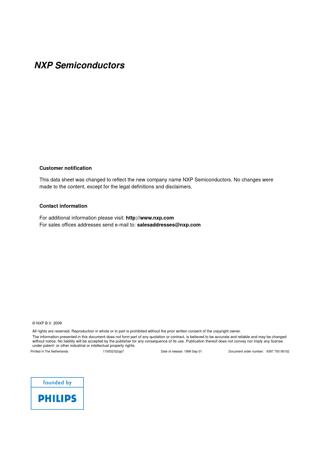 NXP Semiconductors. Customer notification. Contact information. http://www.nxp.com. salesaddresses@nxp.com