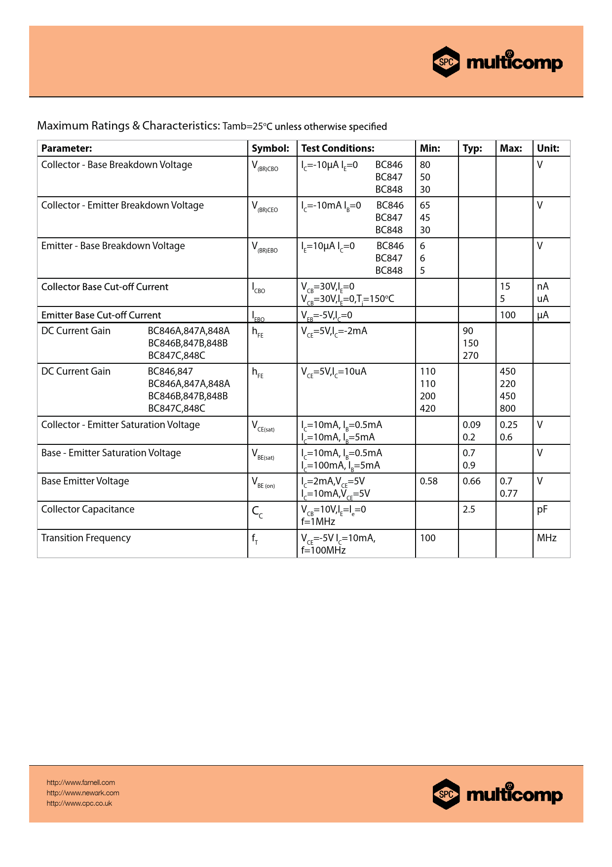 Datasheet BC846, BC847, BC848 (Multicomp) - 2