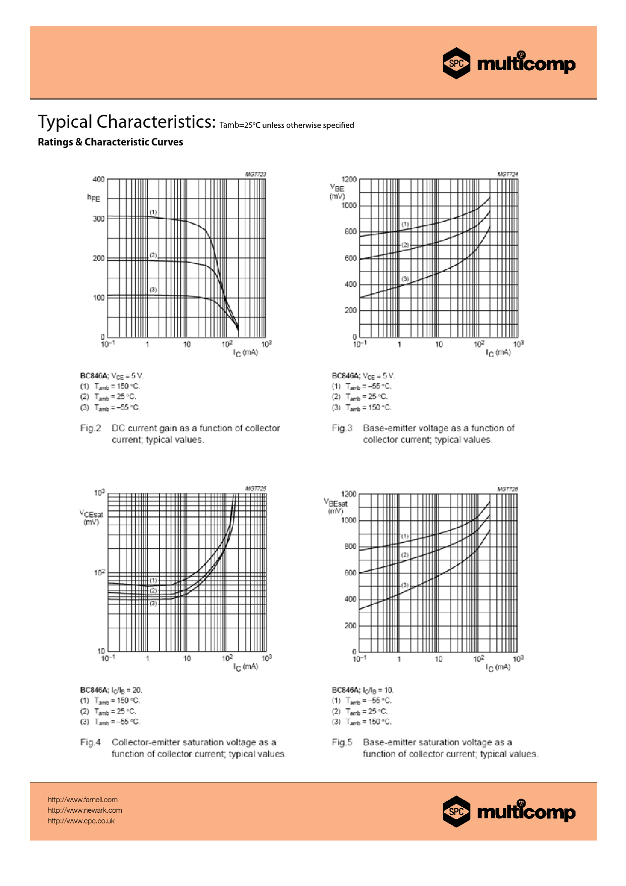 Datasheet BC846, BC847, BC848 (Multicomp) - 3